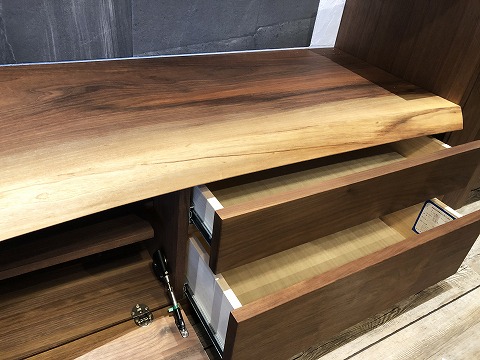 レール付きのしっかりとした作りが印象的な引出しや、扉収納は、中に入れる物のサイズなどを想定した全てオリジナル商品です。