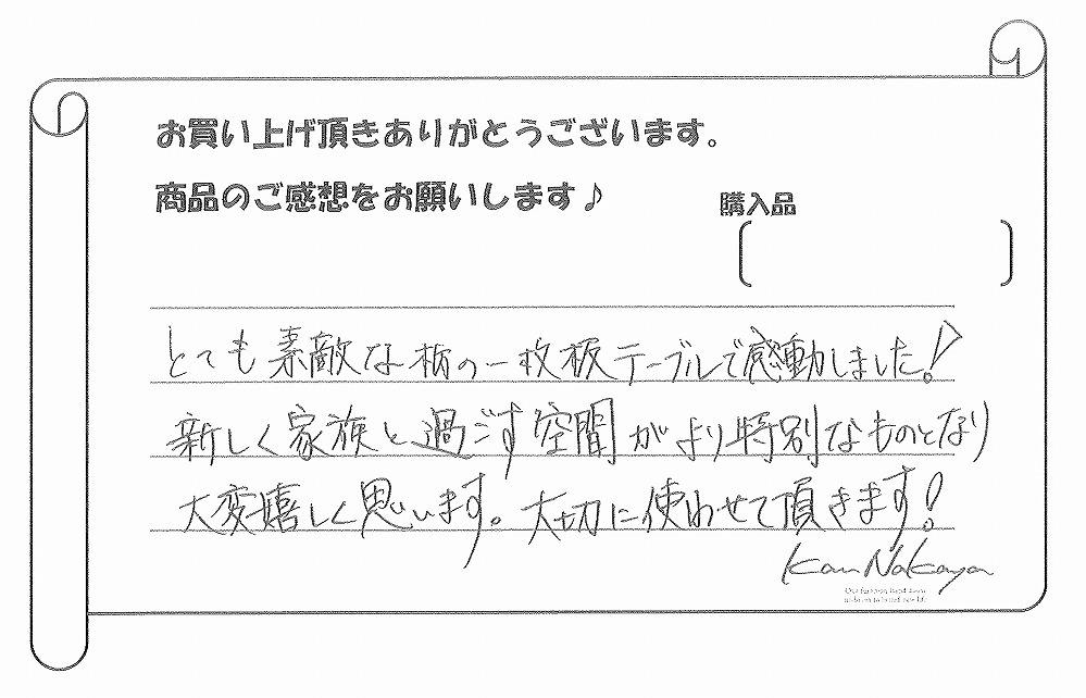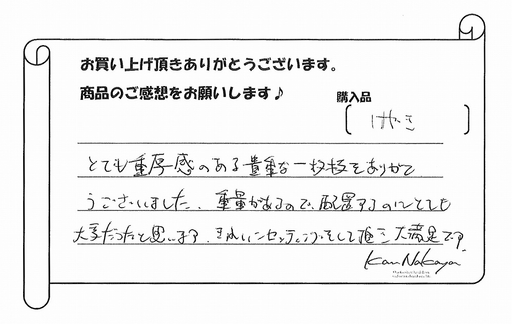 『とても重厚感のある貴重な一枚板をありがとうございました。
