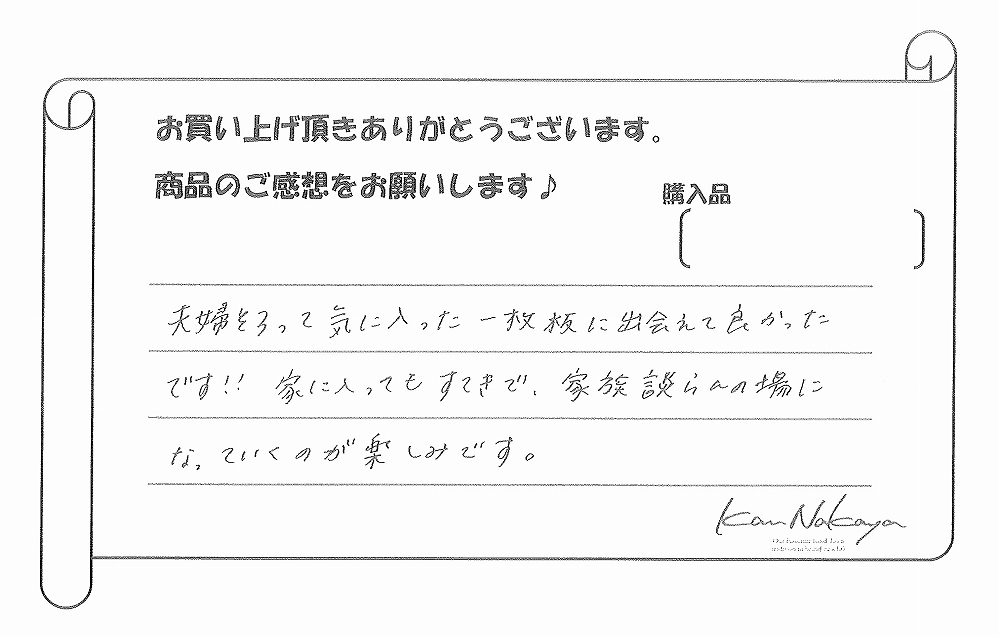 『夫婦そろって気に入った一枚板に出会えて良かったです!!