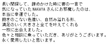 ナカヤさんに色々な事を教えてもらい勉強にもなりました。』