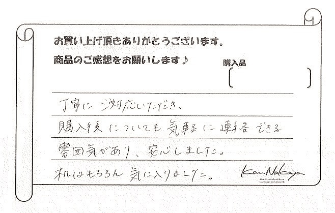 『丁寧にご対応いただき、購入後についても気軽に連絡できる雰囲気があり、安心しました。