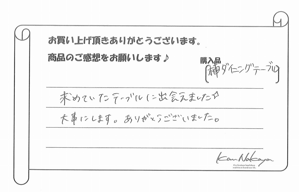 『素敵なテーブルに出会えてとてもうれしいです。