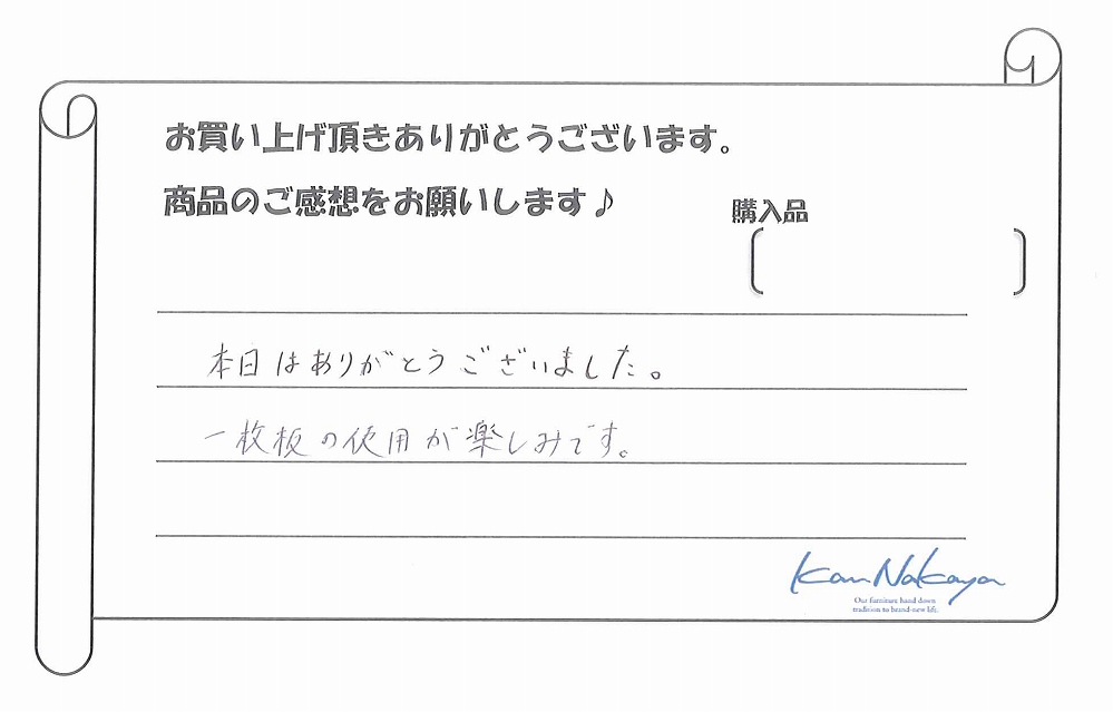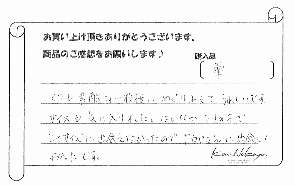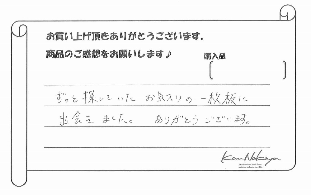 『ずっと探していたお気に入りの一枚板に出会えました。 ありがとうございます。』