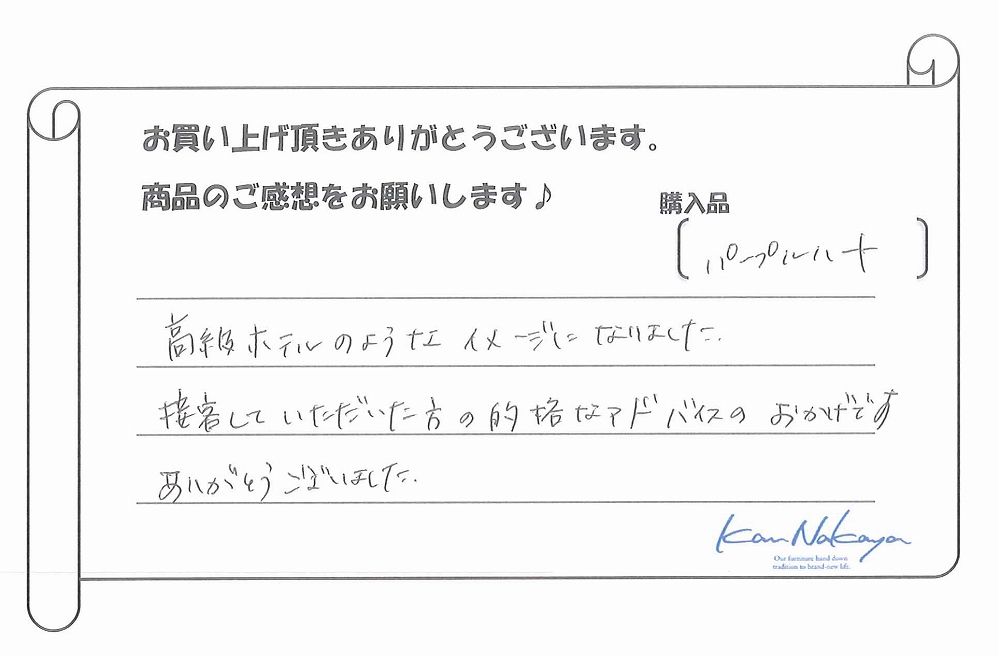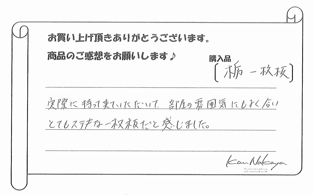 『実際に持って来ていただいて、部屋の雰囲気にもよく合いとてもステキな一枚板だと感じました。』