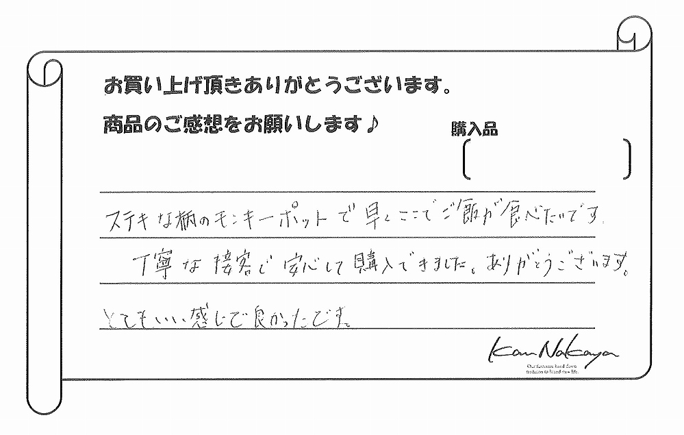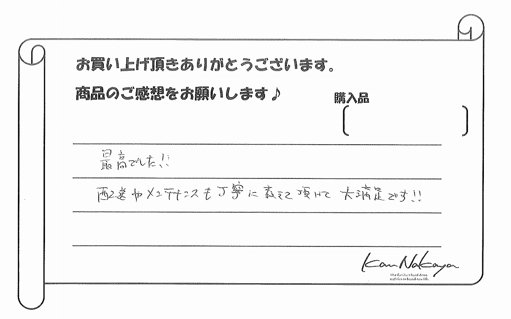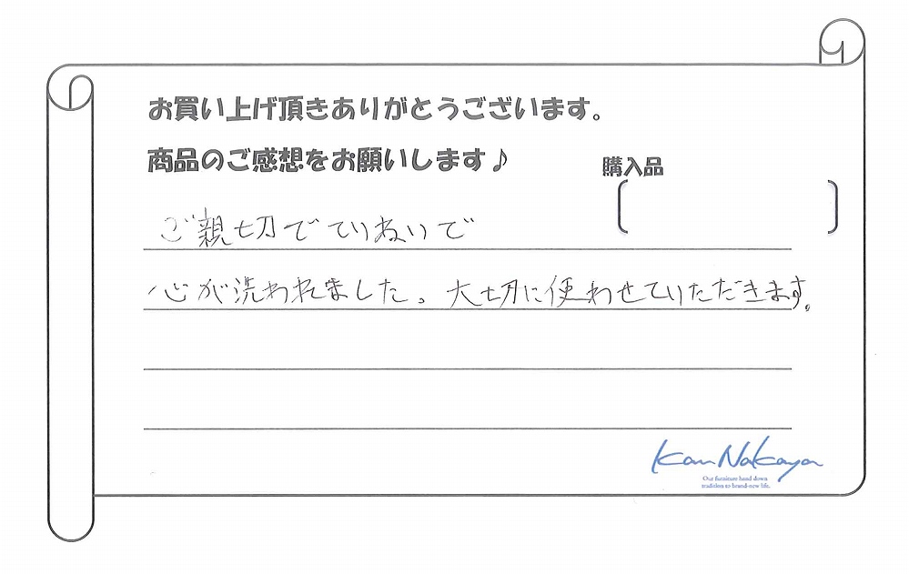 『ご親切でていねいで心が洗われました。大切に使わせていただきます。』