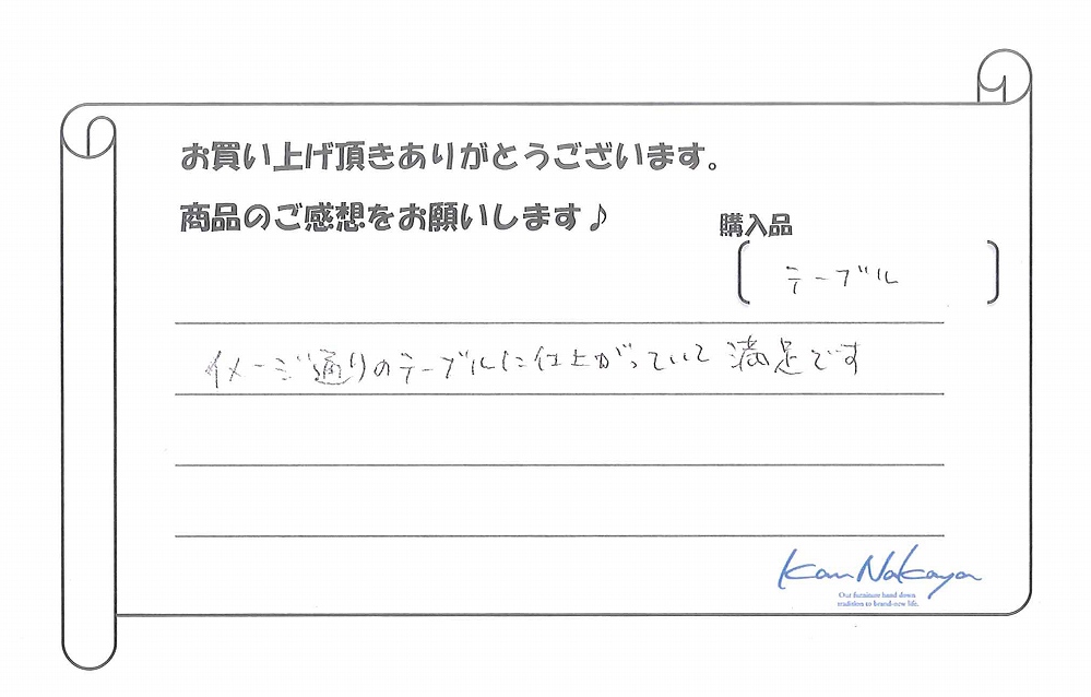 『イメージ通りのテーブルに仕上がっていて満足です。』
