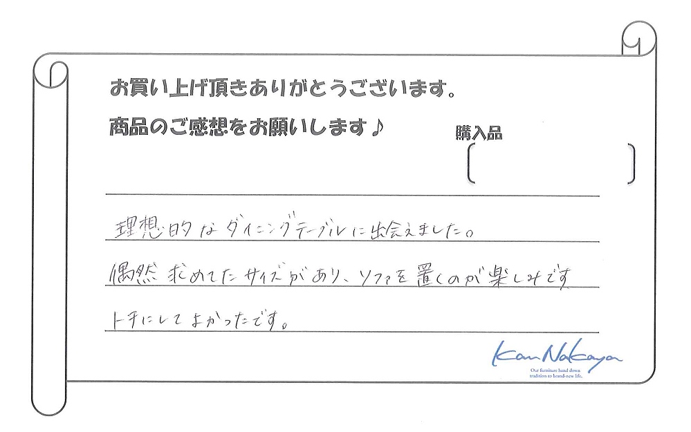 『理想的なダイニングテーブルに出会えました。