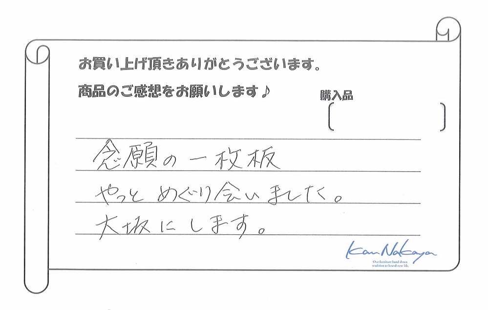 希望通りの一枚板をご提供でき嬉しく思います。