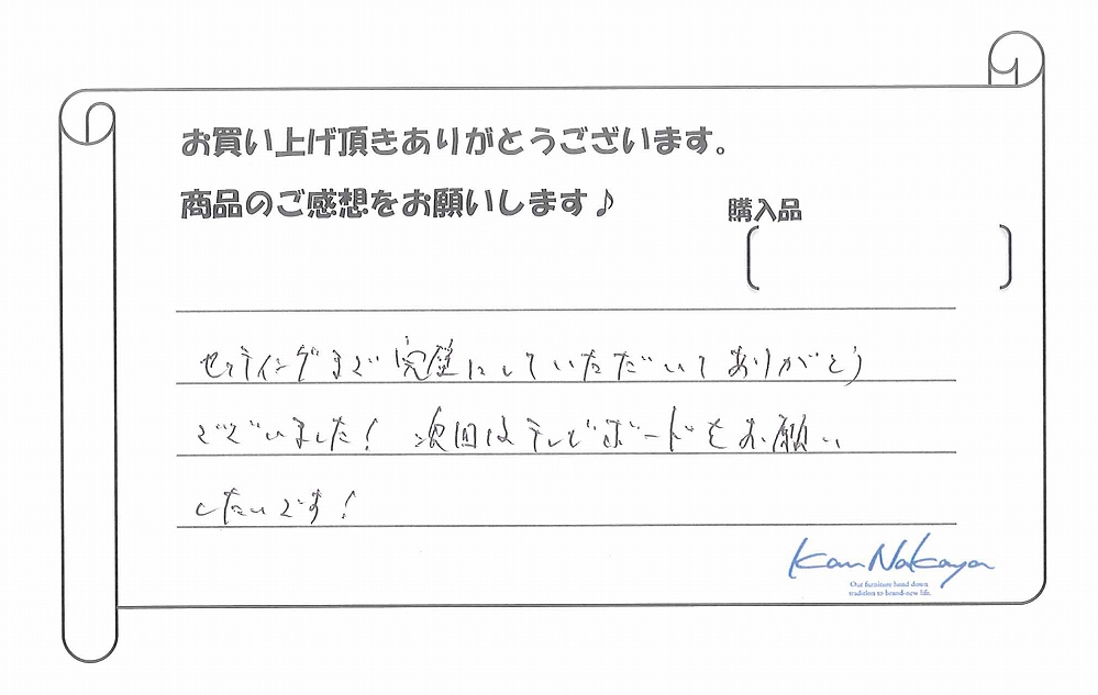 次回はテレビボードをお願いしたいです!』