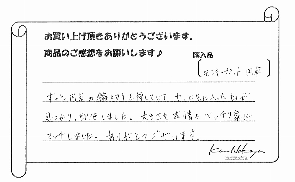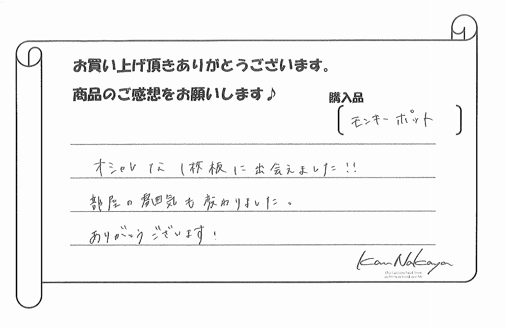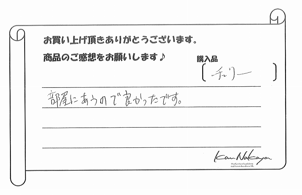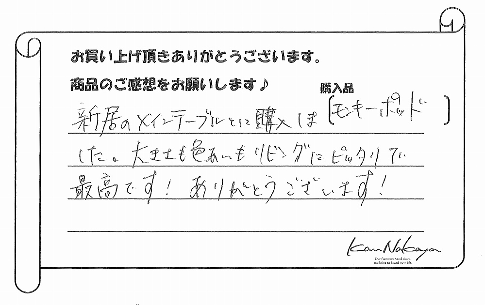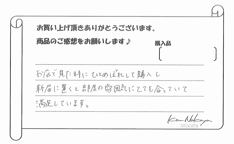 『お店で見た時にひとめぼれして購入し新居に置くと部屋の雰囲気にとても合っていて満足しています。』