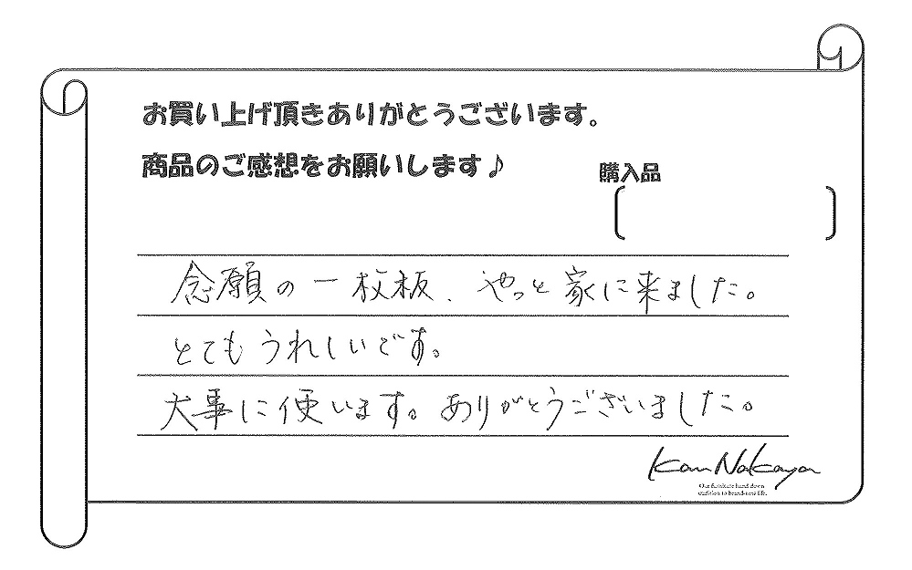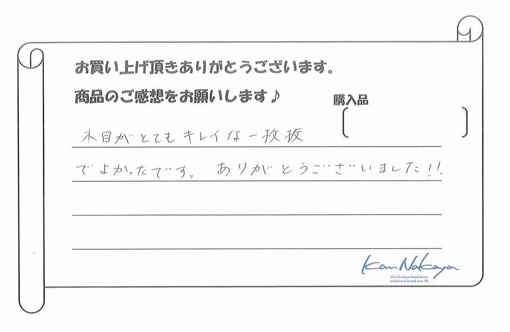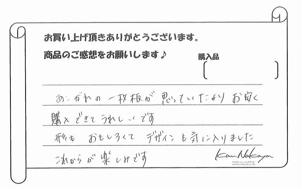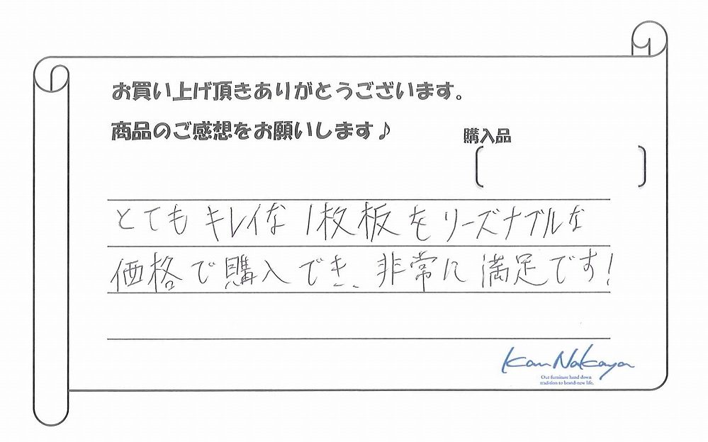 『あこがれの一枚板が思っていたよりお安く購入できてうれしいです。