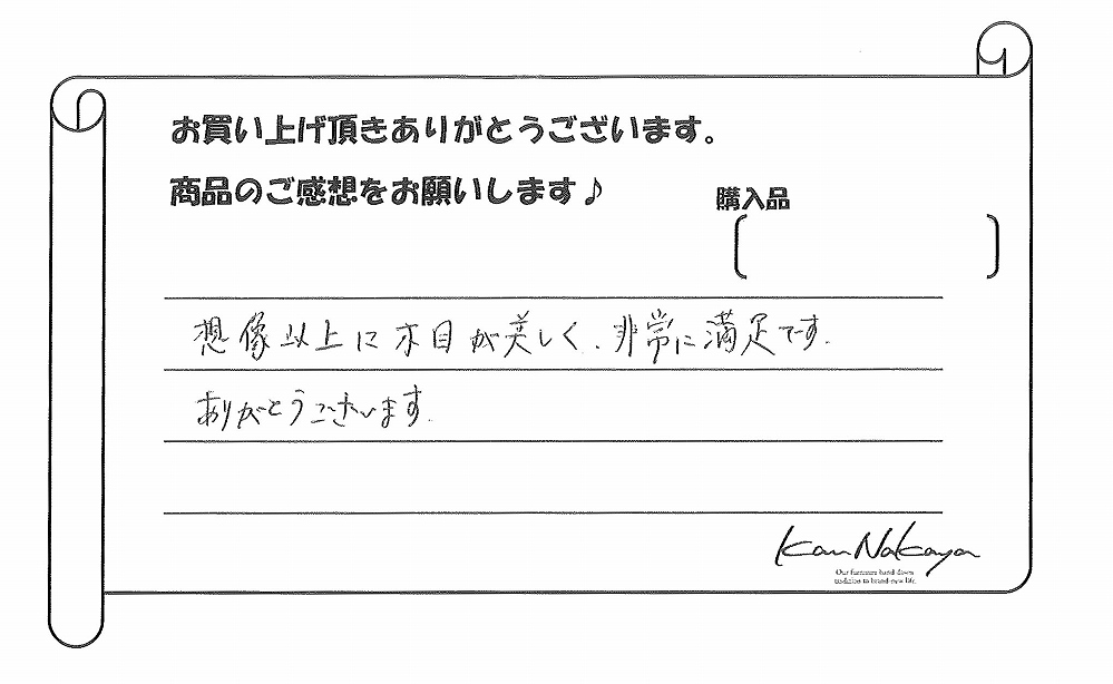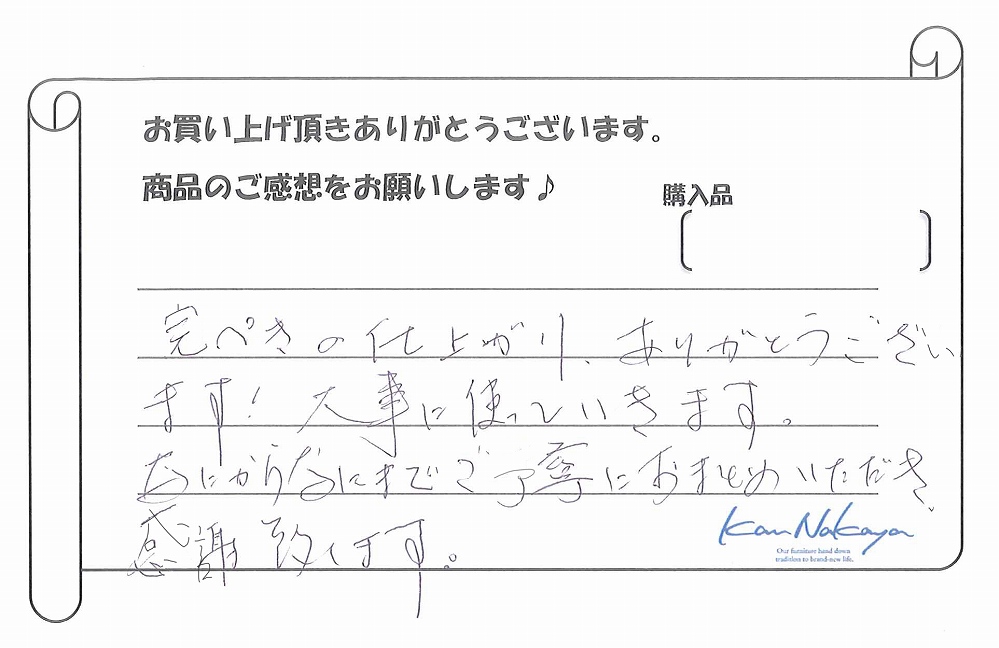 家にもぴったり合い気に入っています。末長く大切にさせて頂きます。