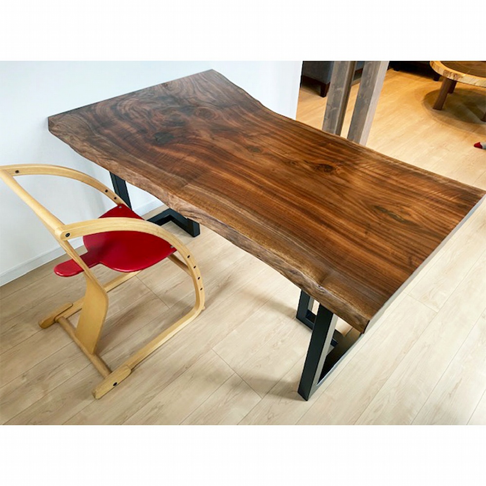 きれいなウォールナットの一枚板でとても素敵なダイニングテーブルになりました。