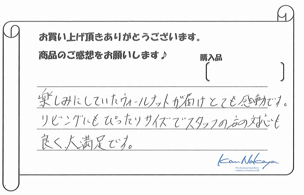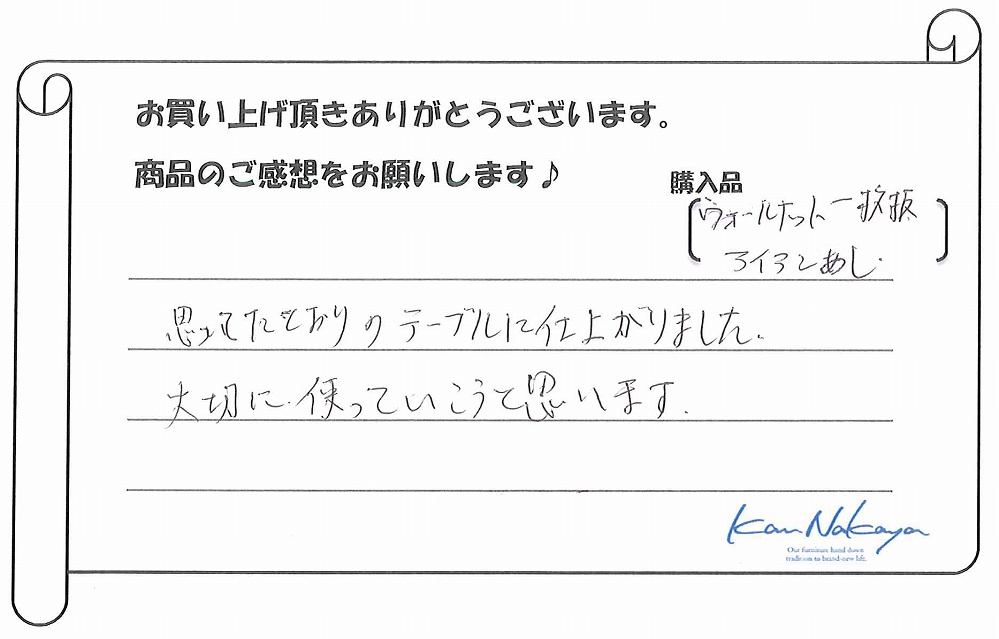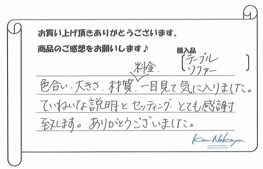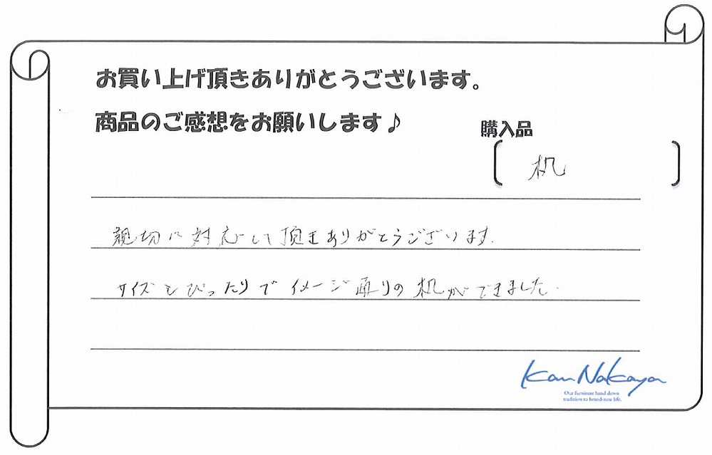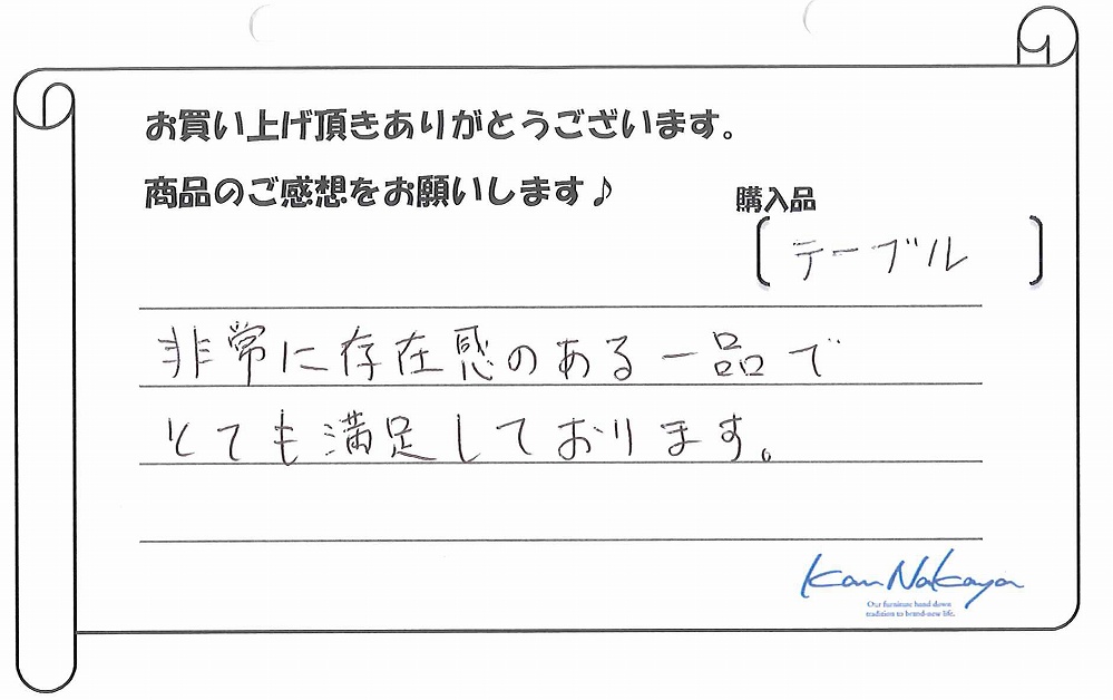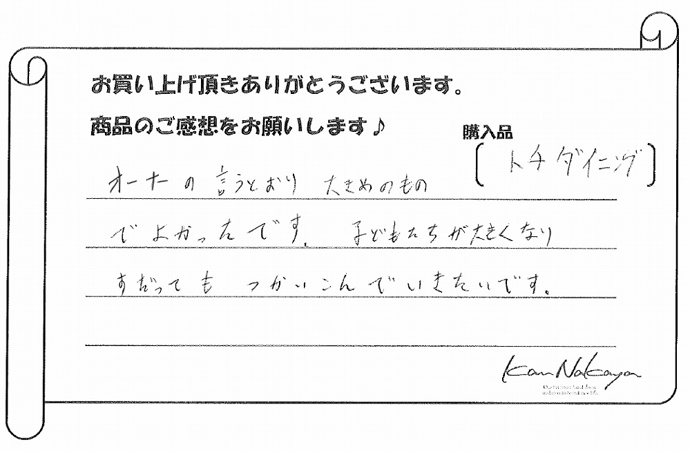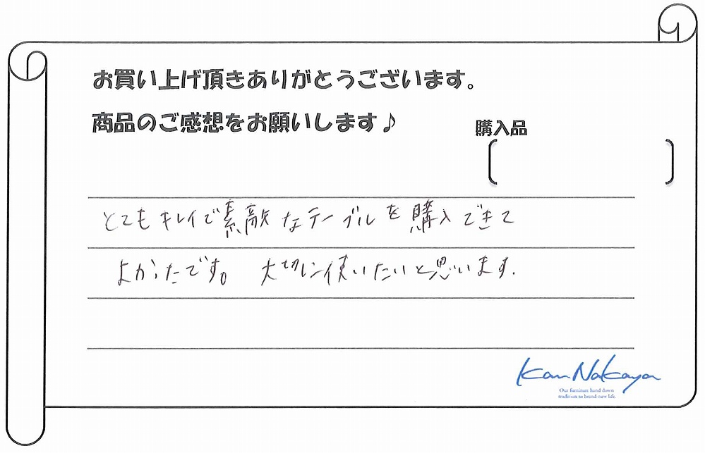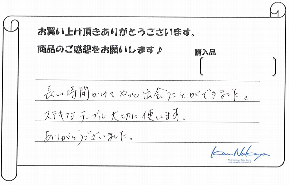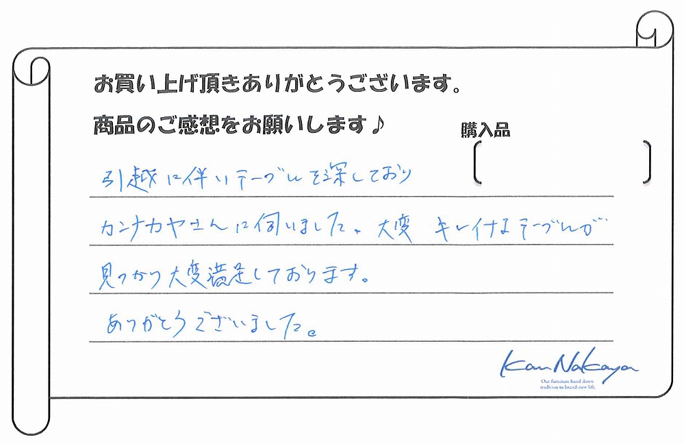 『引っ越しに伴いテーブルを探しておりカンナカヤさんに伺いました。