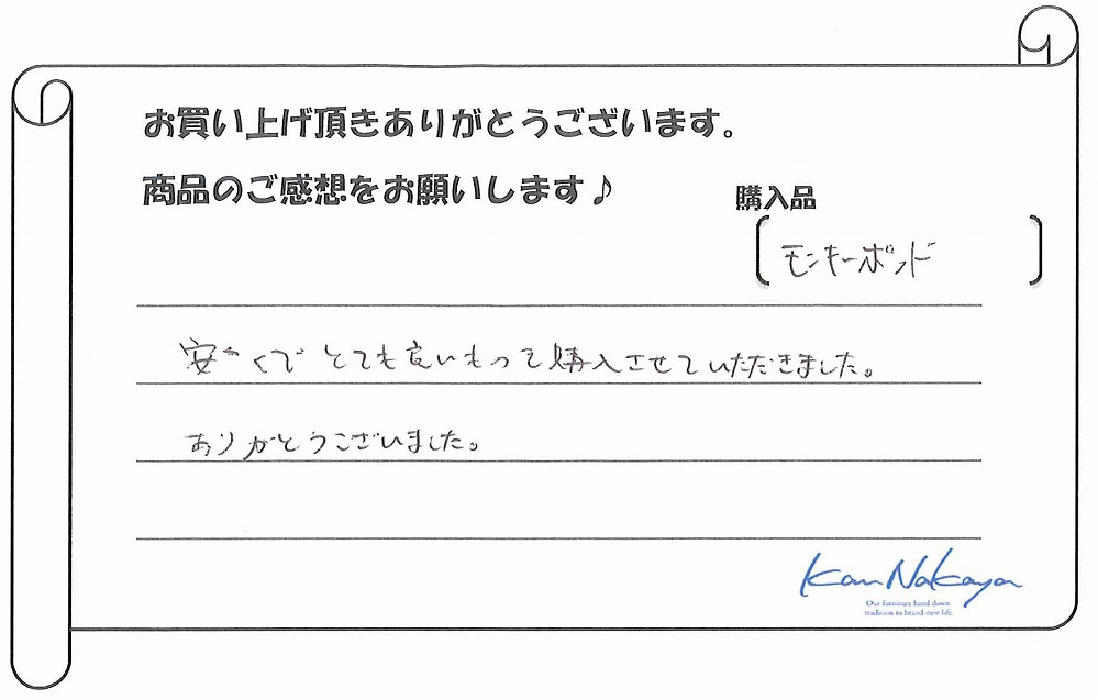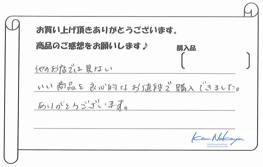 また、価格もどこよりもリーズナブルで本当にいい買い物ができました。』