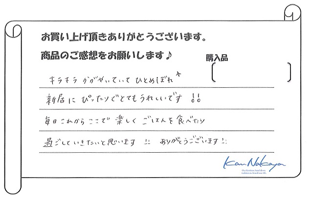 この度はありがとうございました。楽しそうに食卓を囲むところが頭に浮かびます。