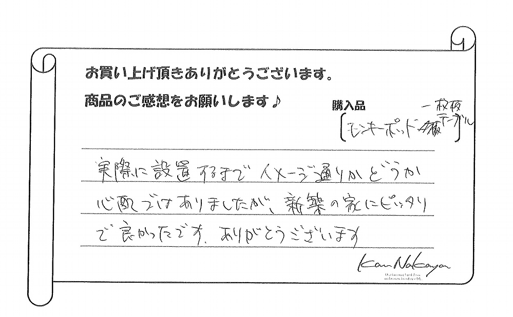 ダイニングの顔としてぴったりですね。ありがとうございました。