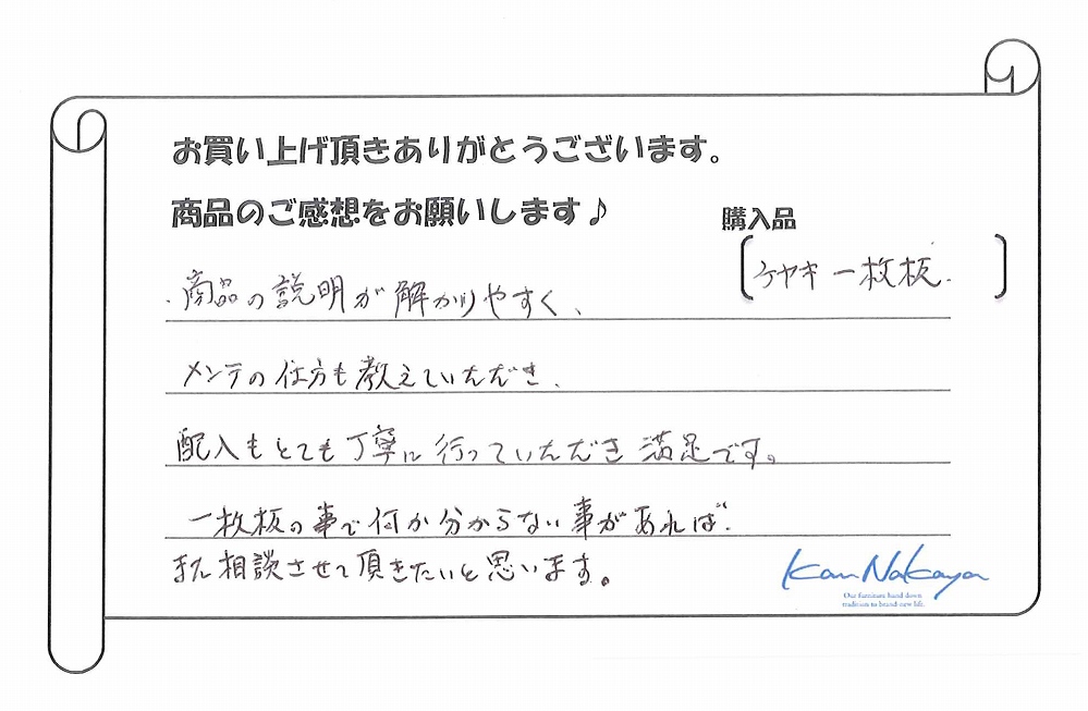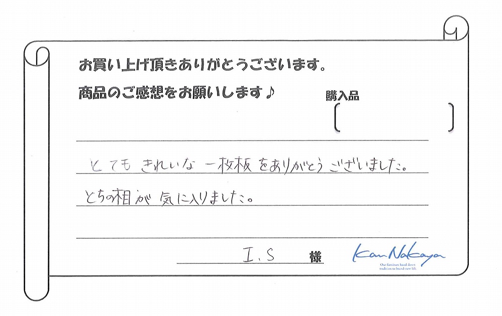 『・理想以上の一枚板が見つかり良かったです。