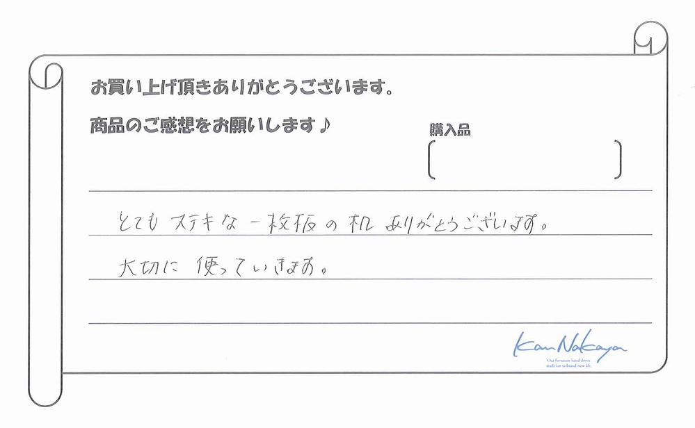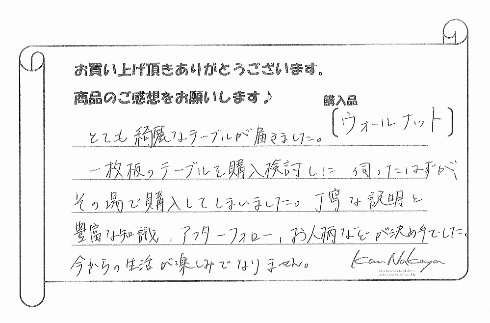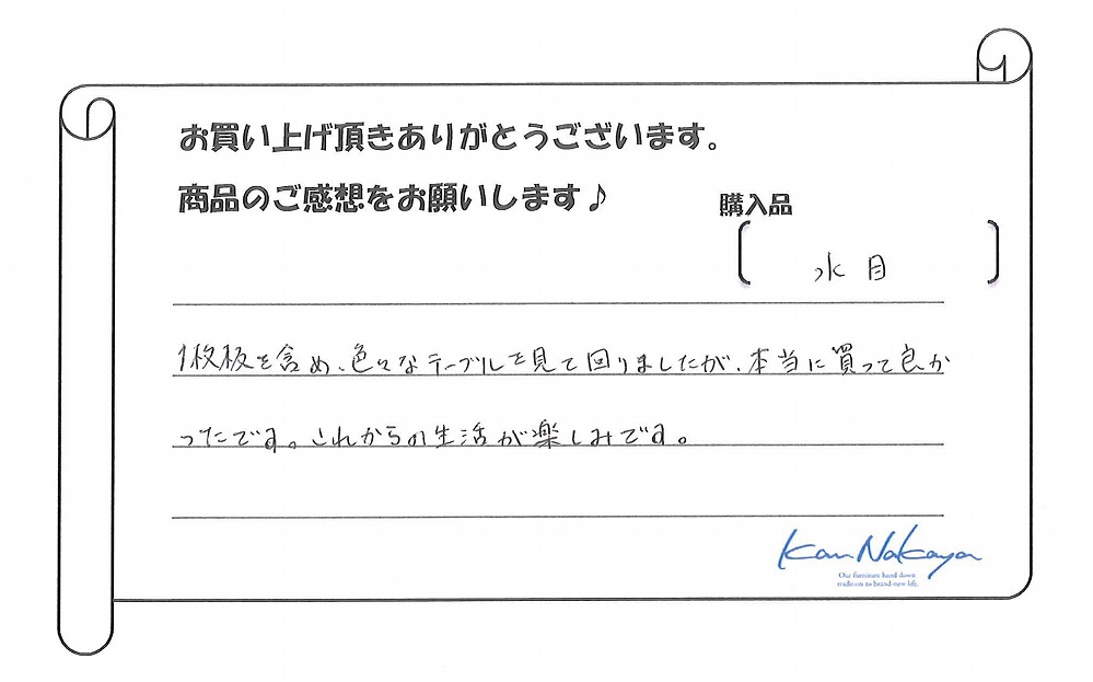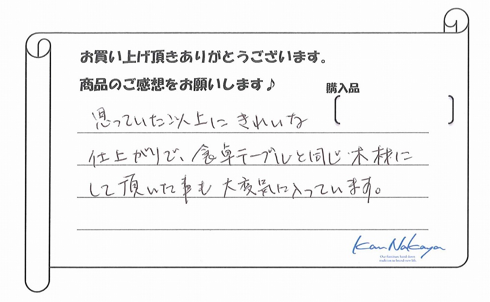 『商品選びから、脚の設計まで、本当に親身に相談にのって頂きました。
