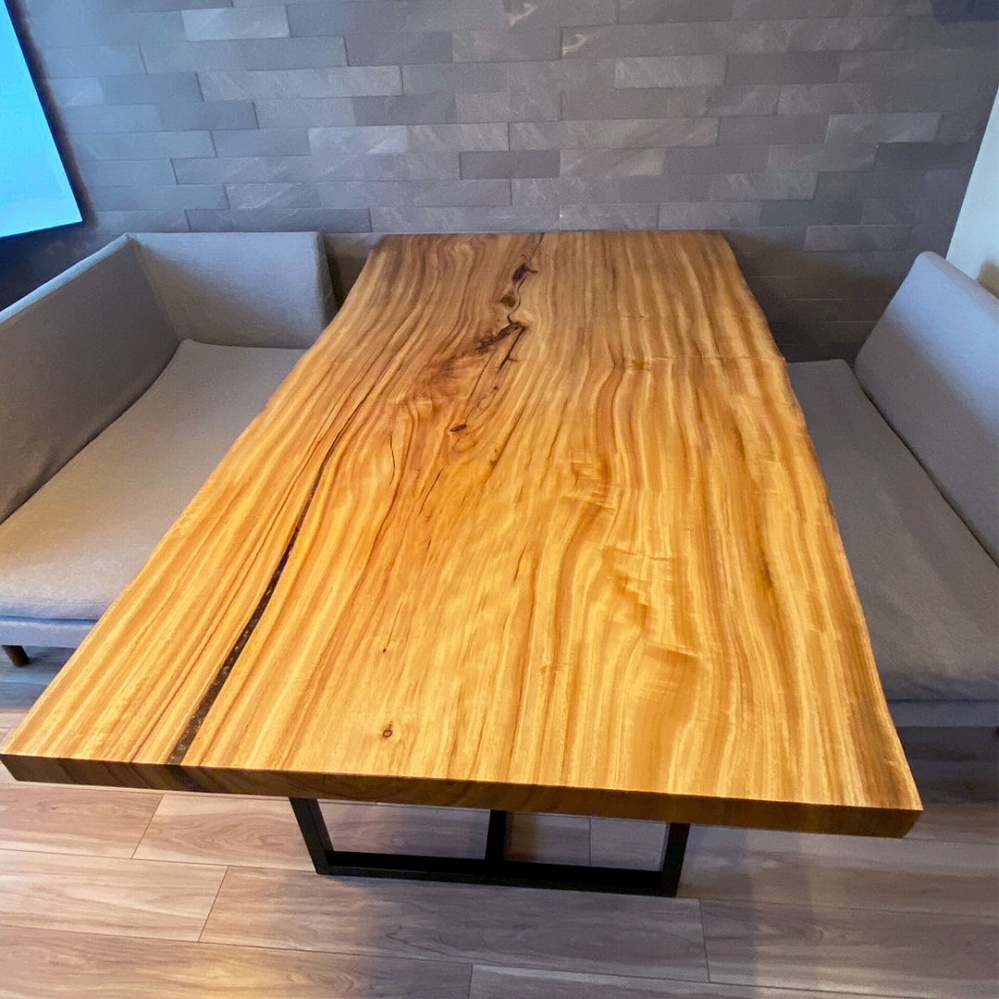 千葉県浦安市に栃の一枚板のダイニングテーブルをお届けしました