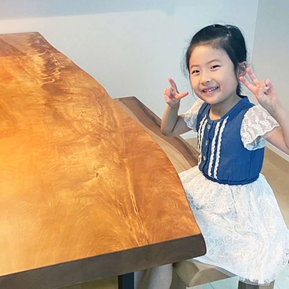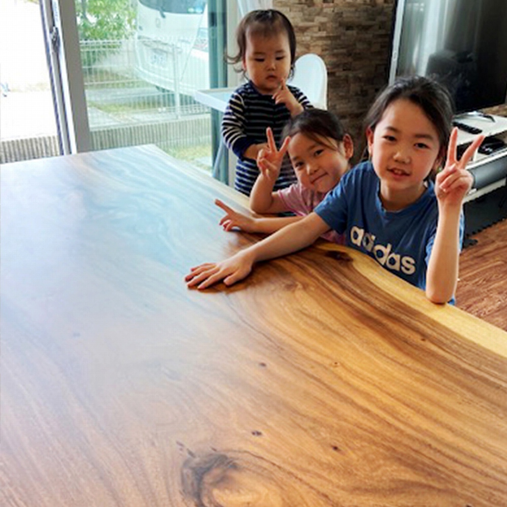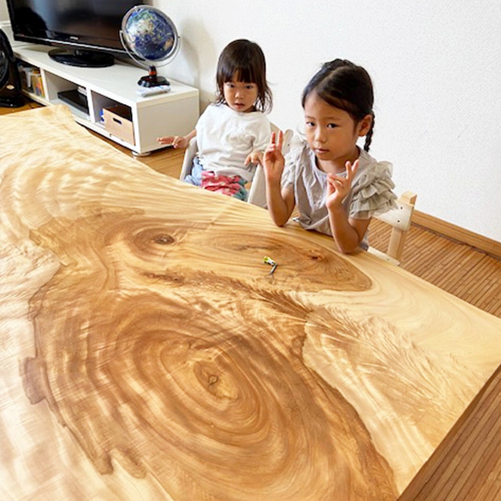 子供たち、そして孫の代、その先まで末永くご使用いただけるのが天然一枚板の魅力のひとつです。