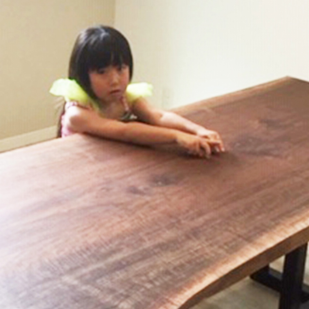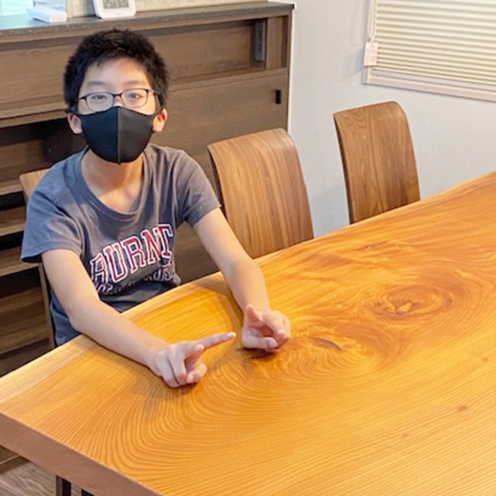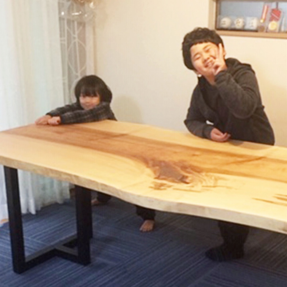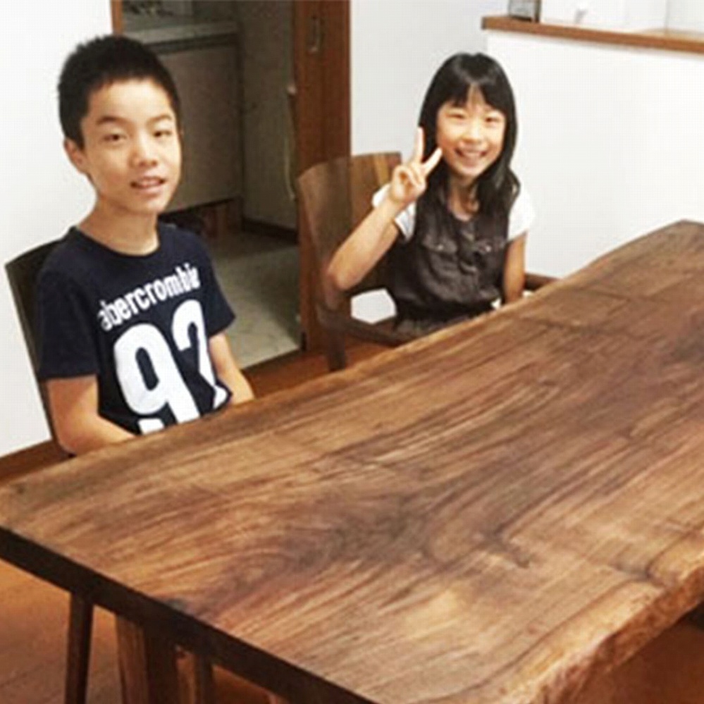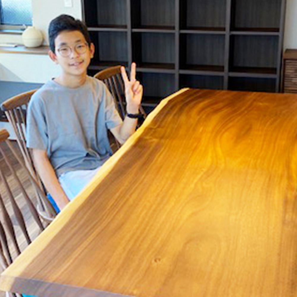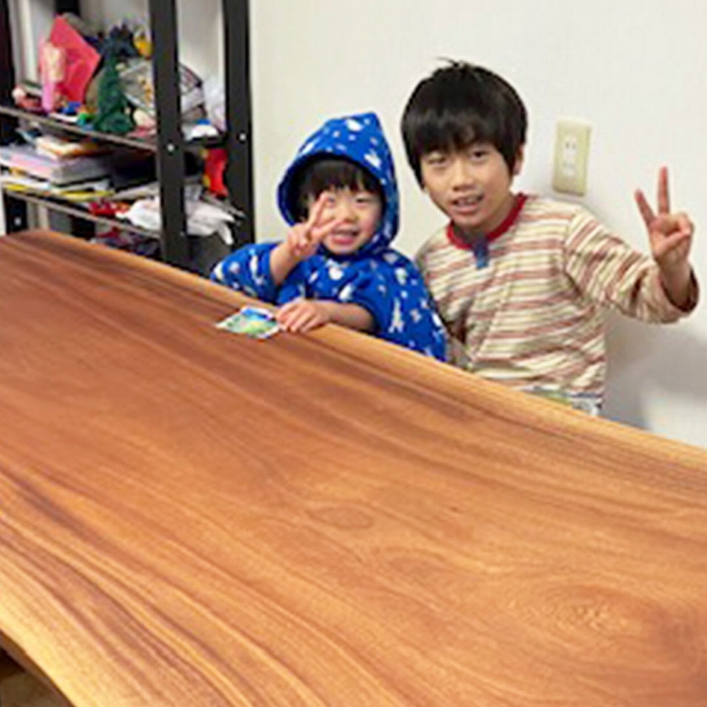 『家のリフォームに伴い、自宅のシンボルとなるような一枚板のテーブルを求めて購入させて頂きました。購入時にはどのような板で、どこに価値があるのか、メンテナンス法等、素人の私に丁寧に教えて頂き本当の意味で満足して購入させて頂いたと感じております。』