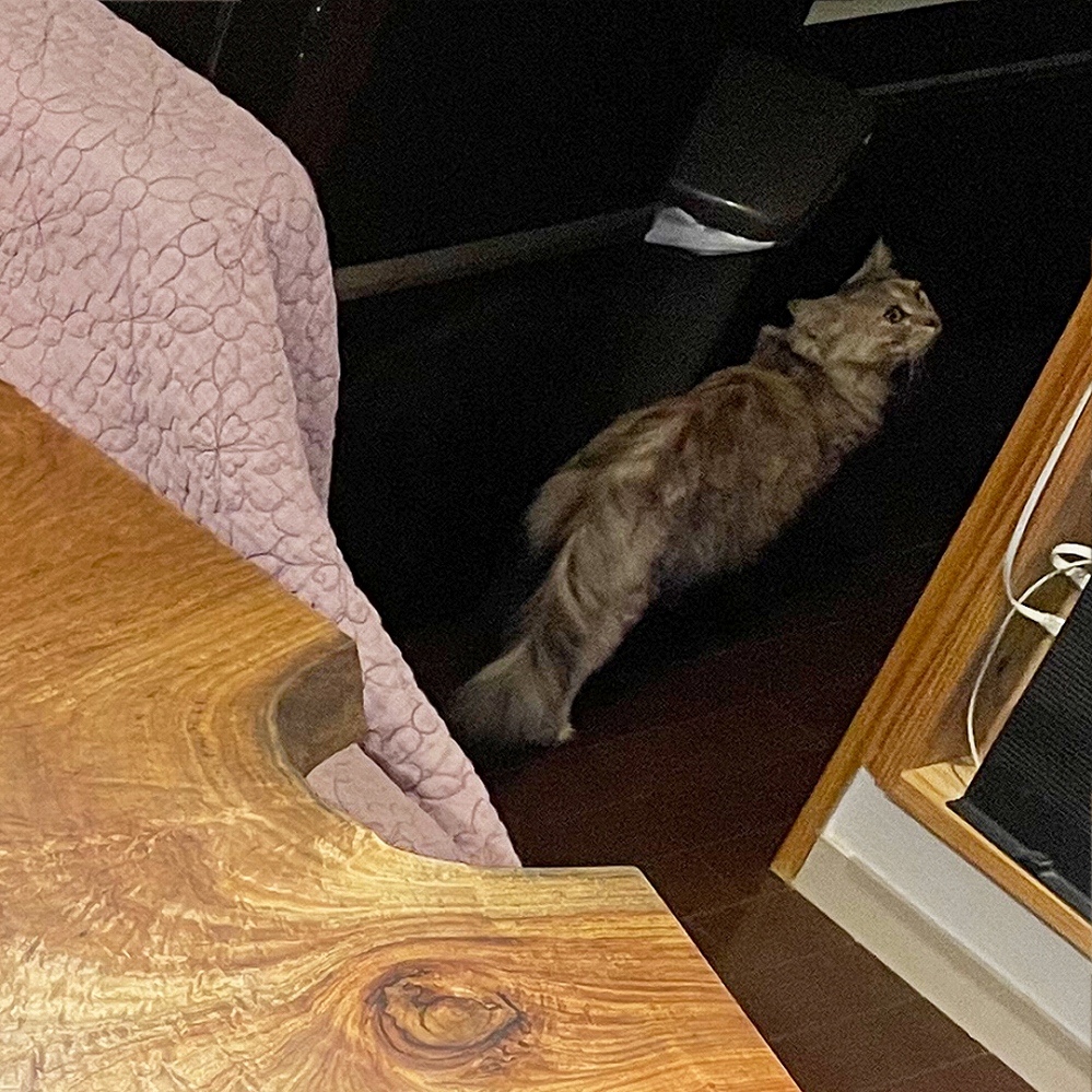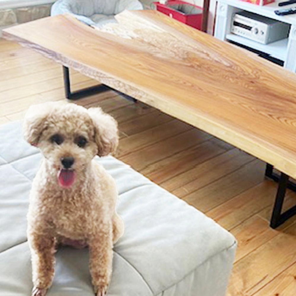 『変形の一枚板の使い勝手を心配しましたが妙に部屋に馴染み、どこに座っても心地良く毎日楽しんでいます。ありがとうございます!』