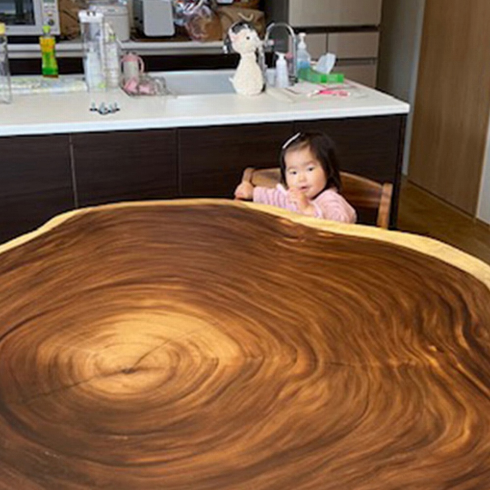『ずっと円卓の輪切りを探していて、やっと気に入ったものがみつかり、即決しました。大きさや表情もバッチリ家にマッチしました。ありがとうございます。』