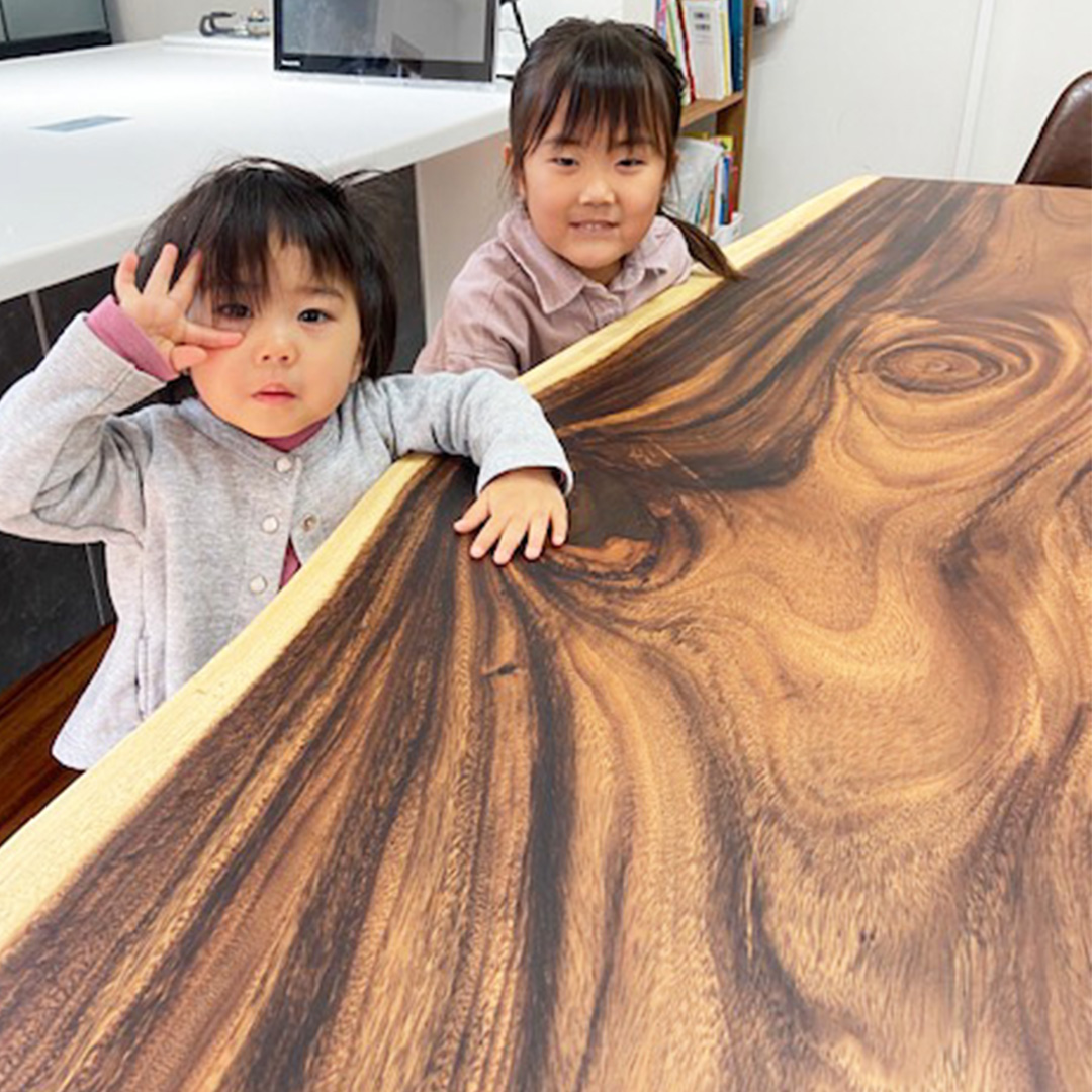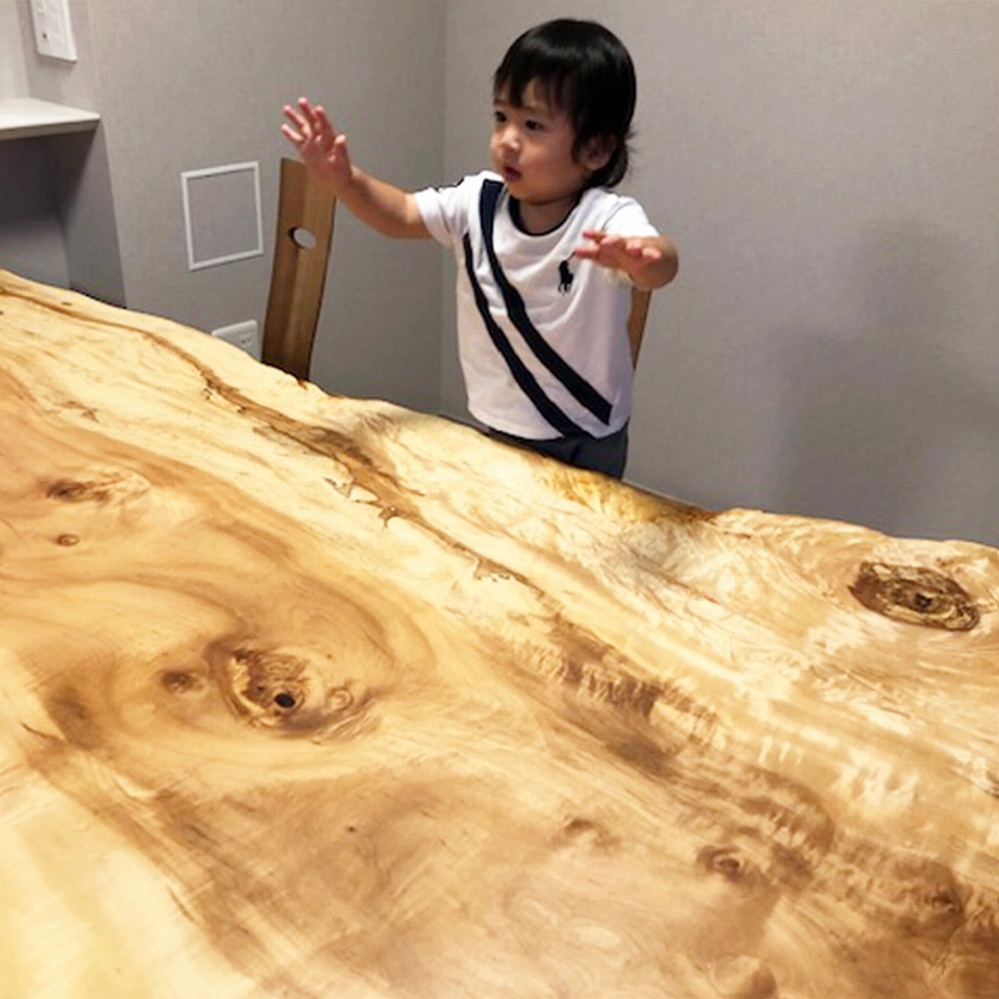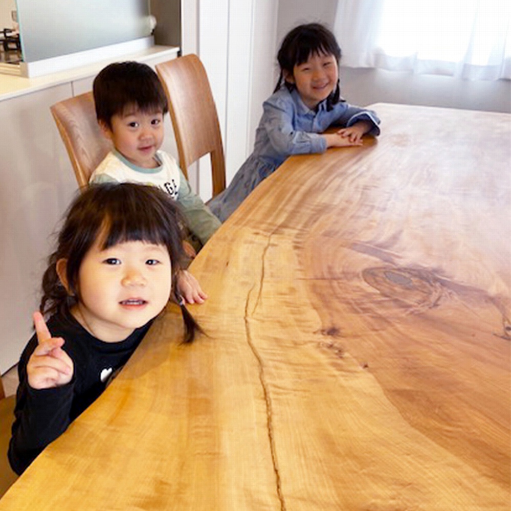 子供たち、そして孫の代、その先まで末永くご使用いただけるのが天然一枚板の魅力のひとつです。