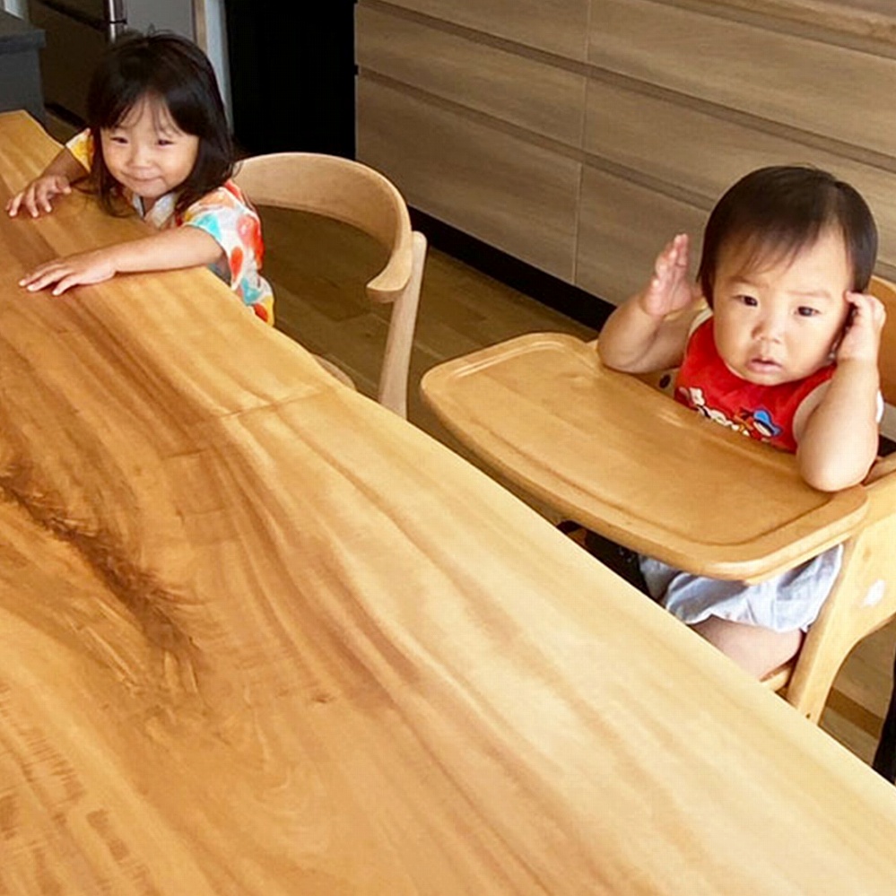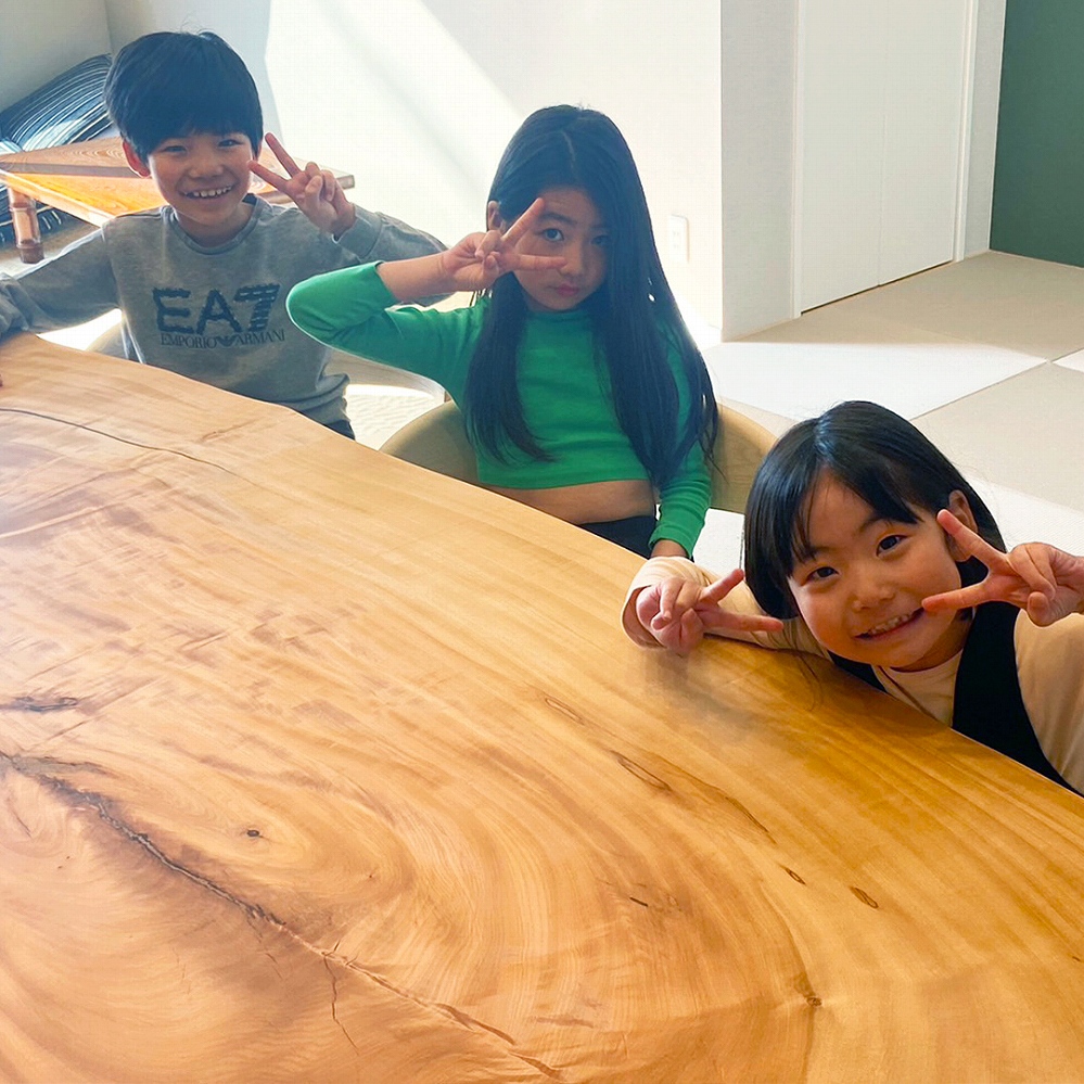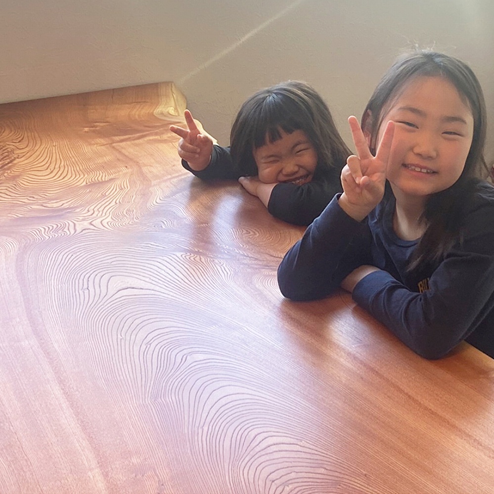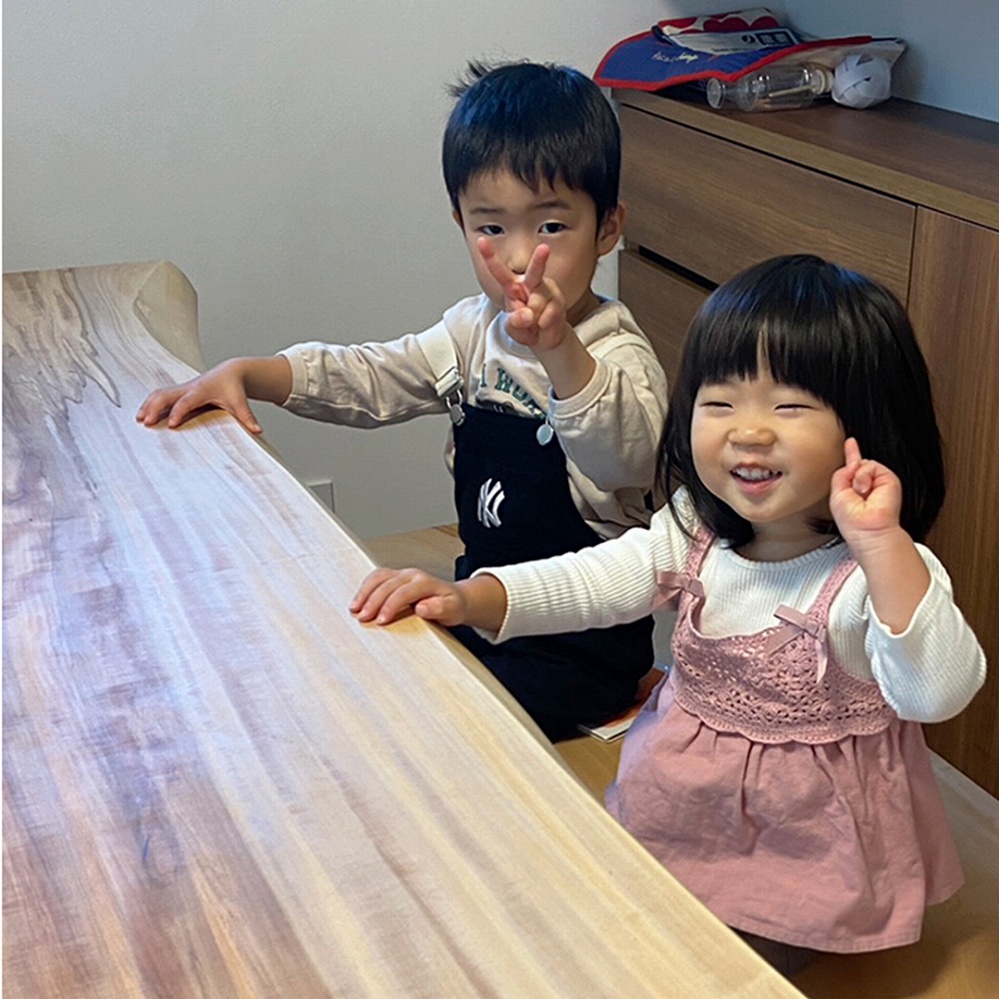 子供たち、そして孫の代、その先まで末永くご使用いただけるのが天然一枚板の魅力のひとつです。