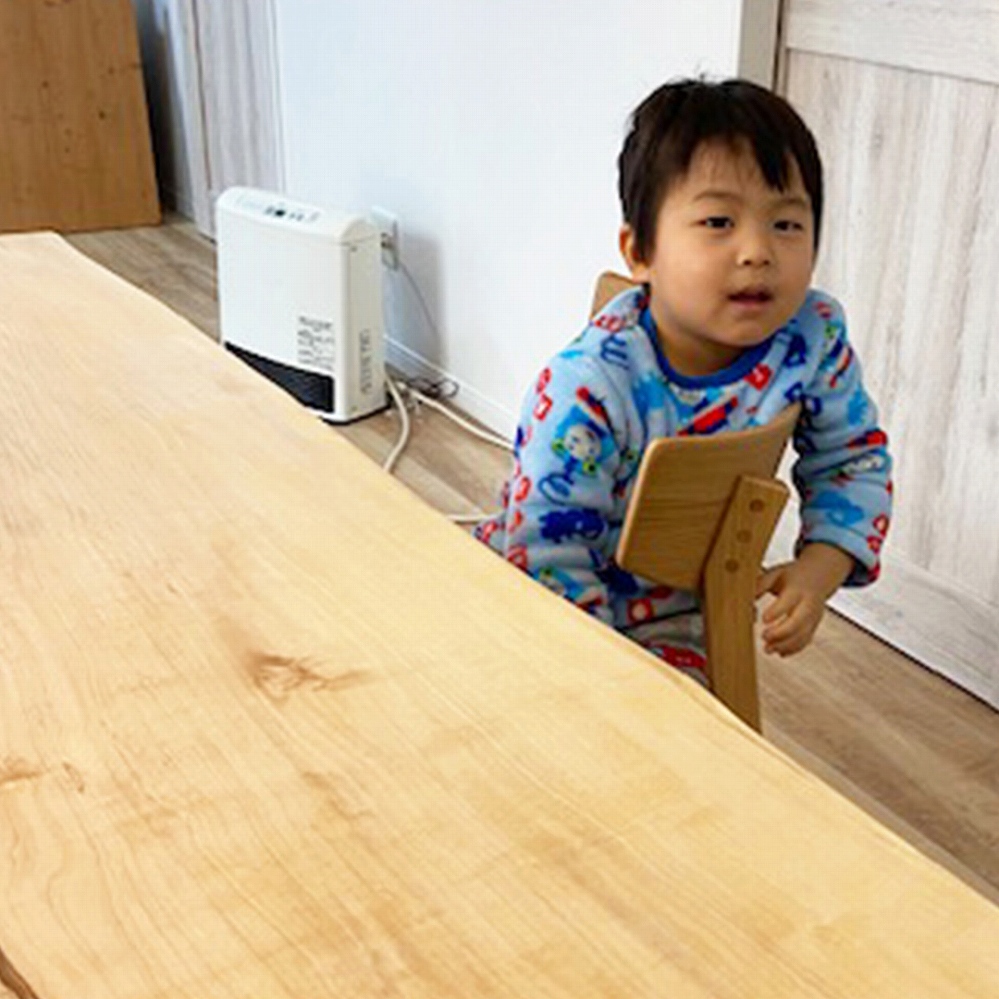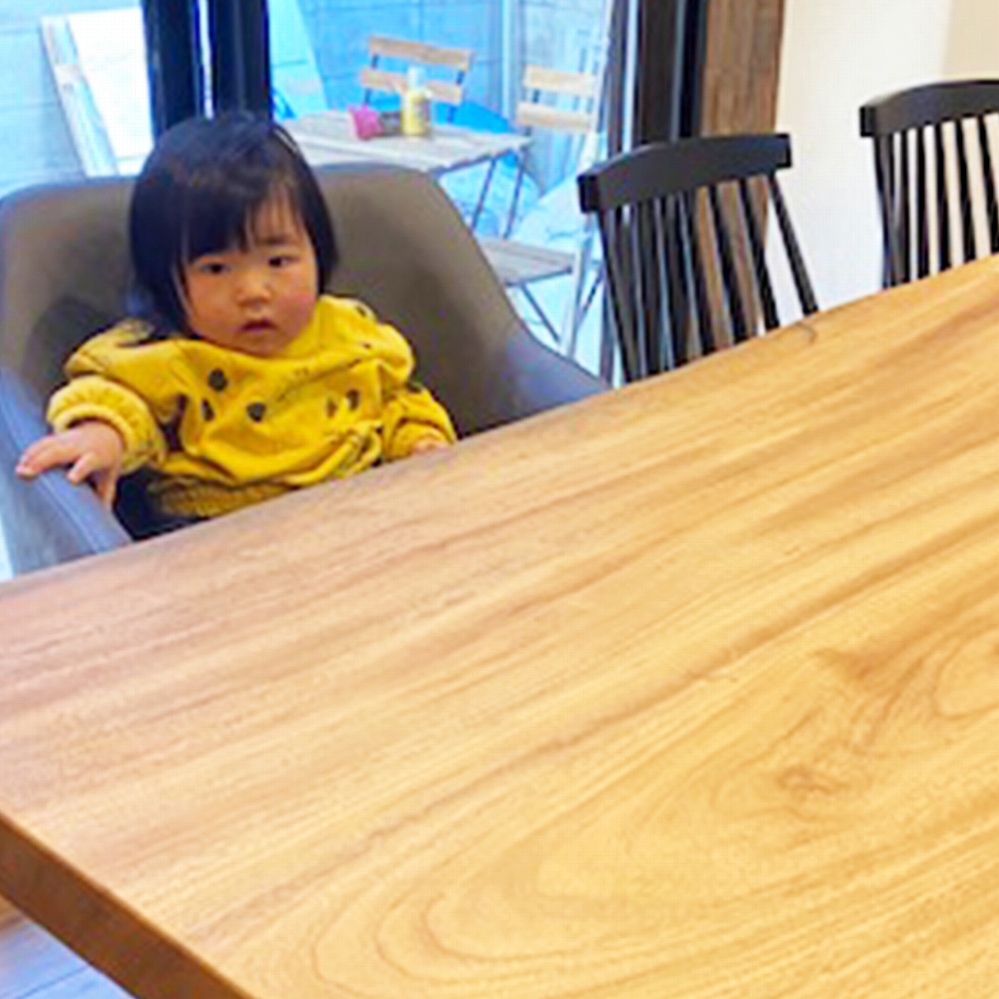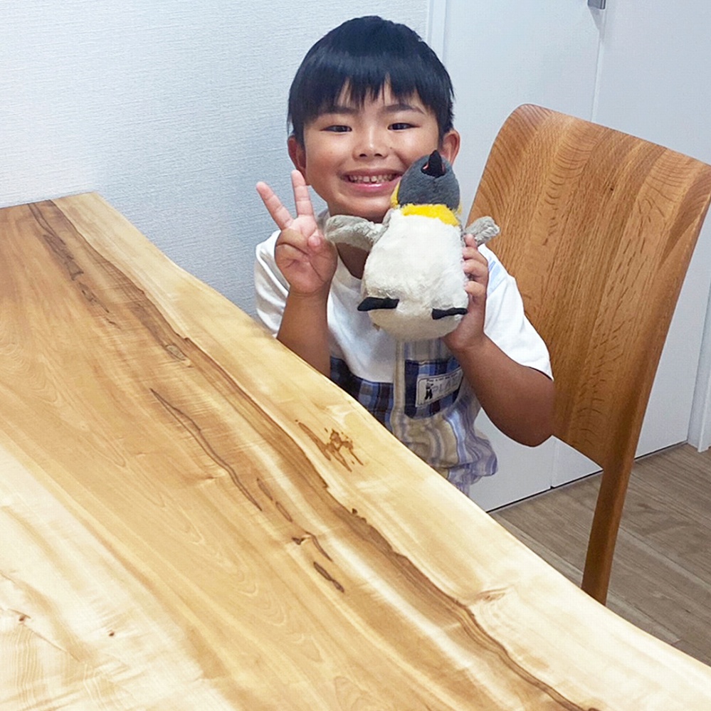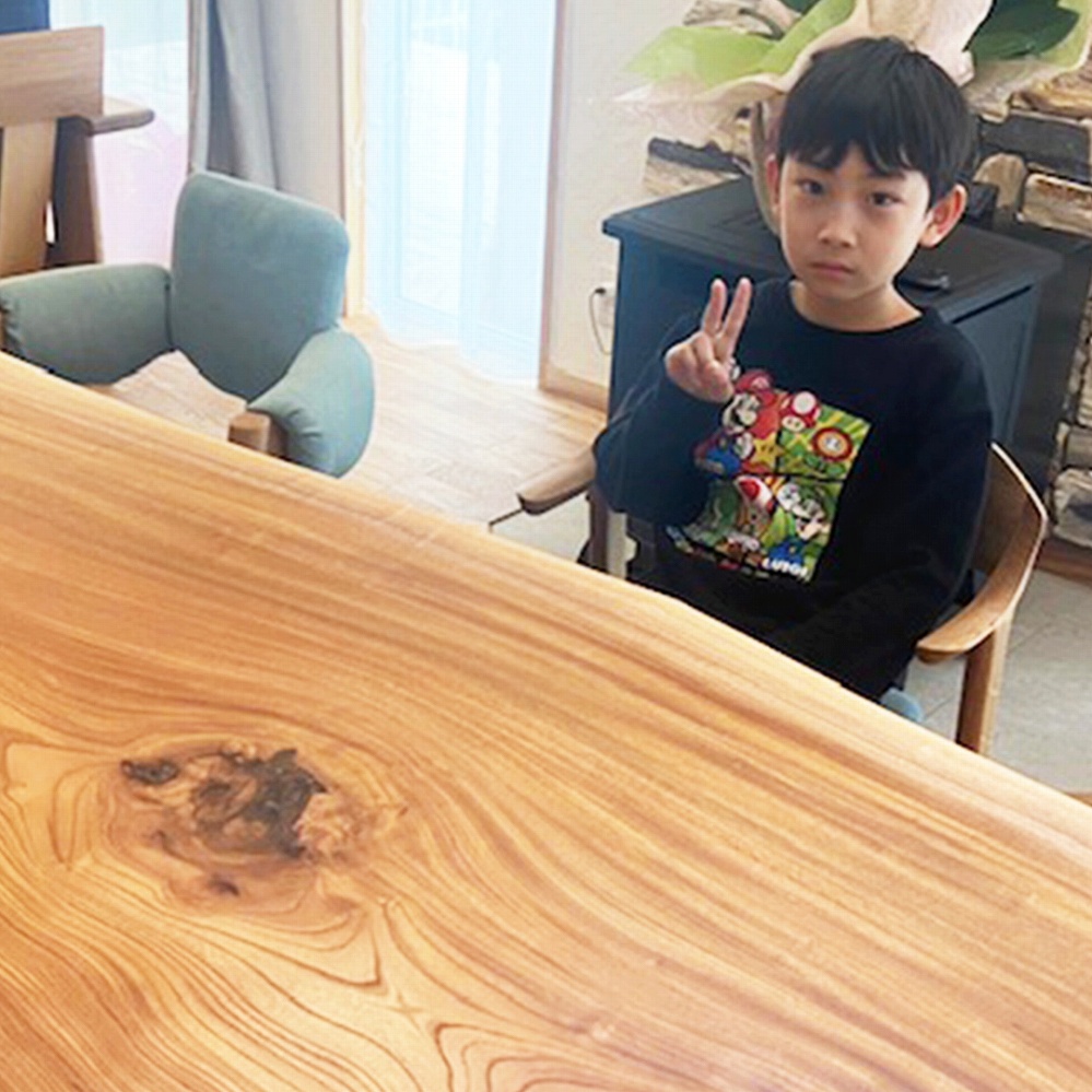 『初めて来店した時から、全ての商品がどれも魅力的で、木の香りもよく、全て欲しくなりました(笑)今回購入した“トチ”のテーブルは、その中でも大きさ、色、触った時の手になじむ感じがよく、一目でこれ!と思いすぐに購入しました!! 実際、家の中に入れてみると、家の中の中心となるぐらいにわが家の集合する場所になりました。ありがとうございます。』