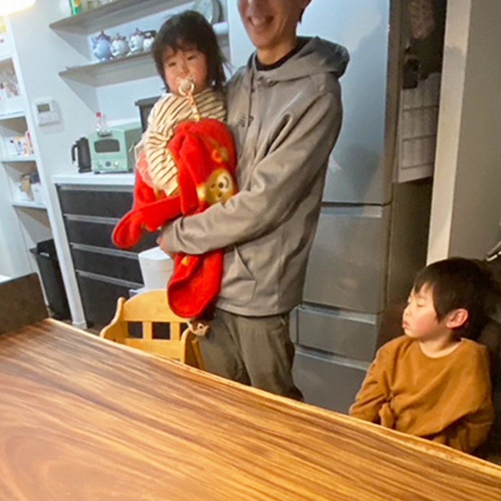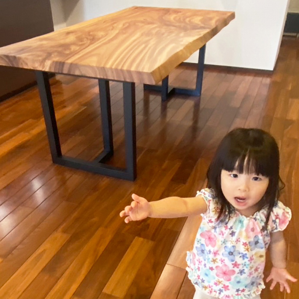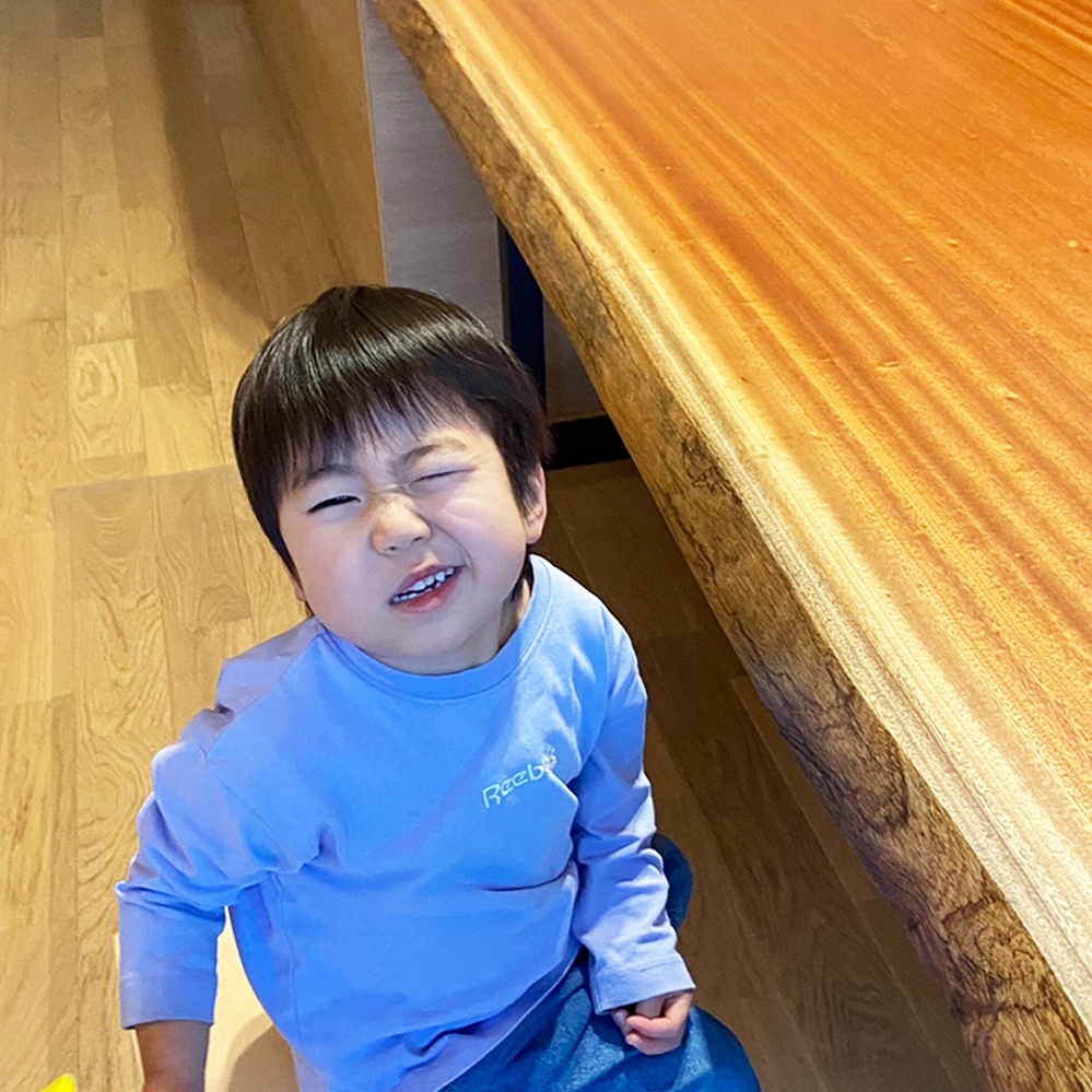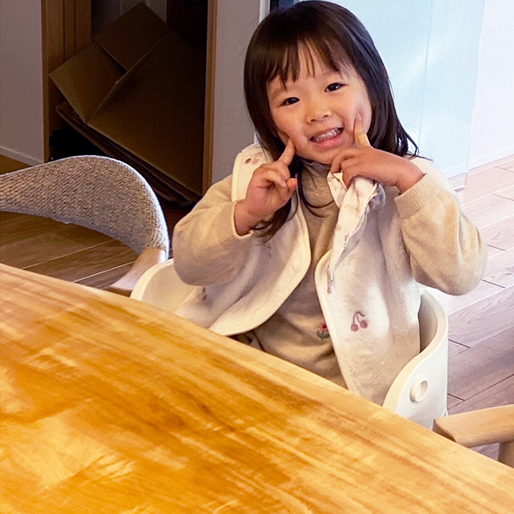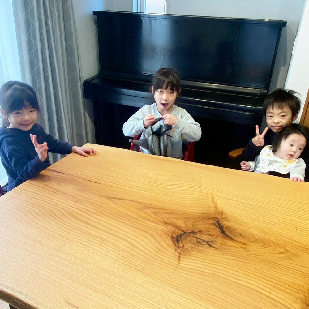 『初めて来店した時から、全ての商品がどれも魅力的で、木の香りもよく、全て欲しくなりました(笑)今回購入した“トチ”のテーブルは、その中でも大きさ、色、触った時の手になじむ感じがよく、一目でこれ!と思いすぐに購入しました!! 実際、家の中に入れてみると、家の中の中心となるぐらいにわが家の集合する場所になりました。ありがとうございます。』