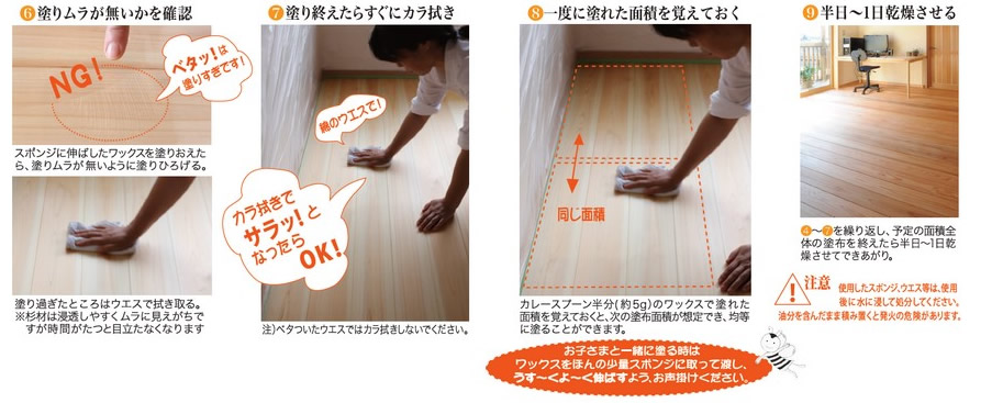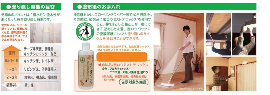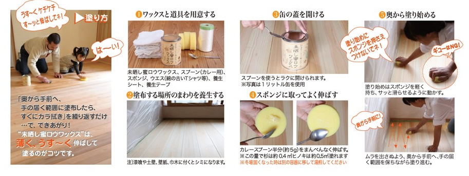 ※蜜ロウワックスは塗布する樹種によって塗れる面積が異なります。