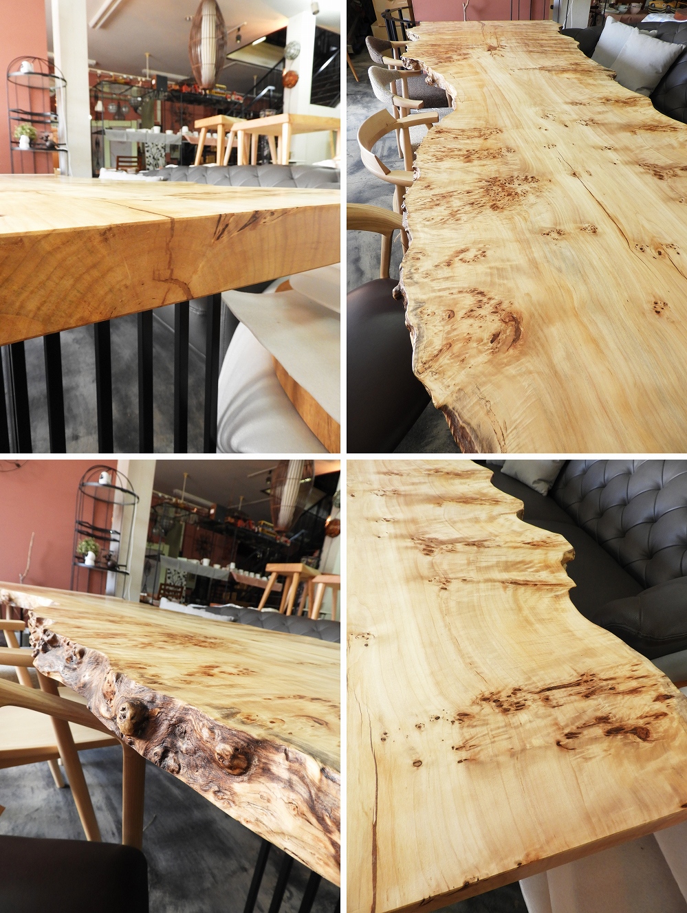 ぎっしりと縮みの詰まった美しいポプラコブの一枚板です。