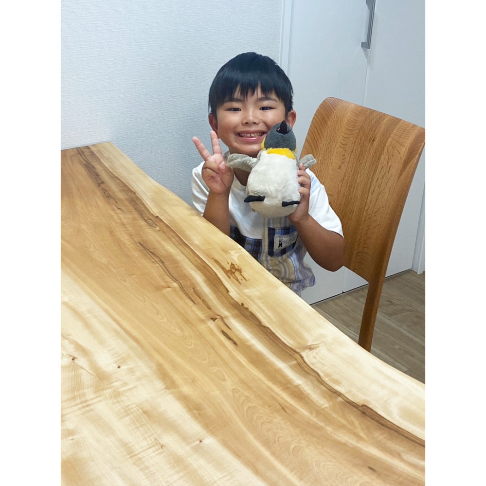 大阪府守口市のお客様へ 栃の一枚板をお届けいたしました♪ 脚も同じ栃材の物をお選びいただき、 イスは似た色合いのオークです😄 最初はウォールナットなどの濃い色合いで 考えられていましたが 色々見ていく中で明るい色も良いよねと 白い栃の一枚板をお選びいただきました✨ お子様にも素敵な笑顔で 写真を撮らせて頂きました 喜んでいただけたようで こちらも嬉しくなりますね🤗 ありがとうございました!