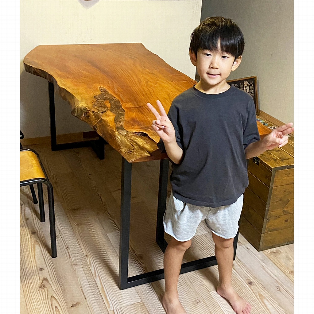 大阪府堺市のお客様へ 山桜一枚板をお届けしました🤍 太いものがなかなか無い山桜ですので テーブルとして使用できる貴重なサイズ感です それに加え綺麗な杢目と表情をしていますね 夕方のお届けで時間より早く着いてしまいましたが 急いで戻ってきてくださいました🙏💦 元気な男の子からも写真を頂きました! ありがとうございました😊