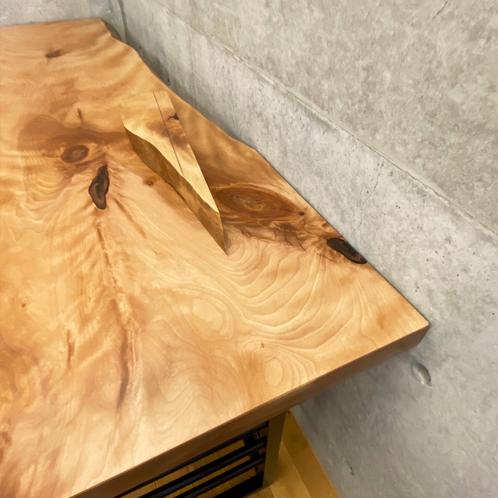 大阪府大阪市のお客様の事務所へ ミズメの一枚板を納品させて頂きました😀 リピーターのお客様です♪ これはまた綺麗な杢がふんだんに表れている素敵な一枚です! どうすればこのような美しい杢が現れるのでしょうか... 目を離すことができないミズメです😌✨ とても素敵な空間になりました お仕事されたり、ホッと一息ついたり 楽しんで使ってくださいね🤗