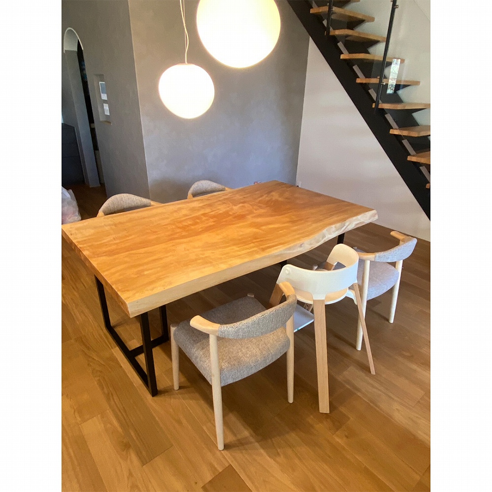 大阪府八尾市のお客様のお宅へ 栃の一枚板テーブルと 北海道産の白樺材のダイニングチェアを お届けしました ダイニングに合わせて大きさをカットさせて頂いております ピッタリとバランスの良いサイズ感です♪ また、白樺の椅子との相性も抜群ですね! 白さが際立つ白樺はそれだけで本当に綺麗ですが、 栃の天板と相まってお互いを引き立てています✨ お子様にも良い笑顔の写真を頂きました❤️ ありがとうございました😊