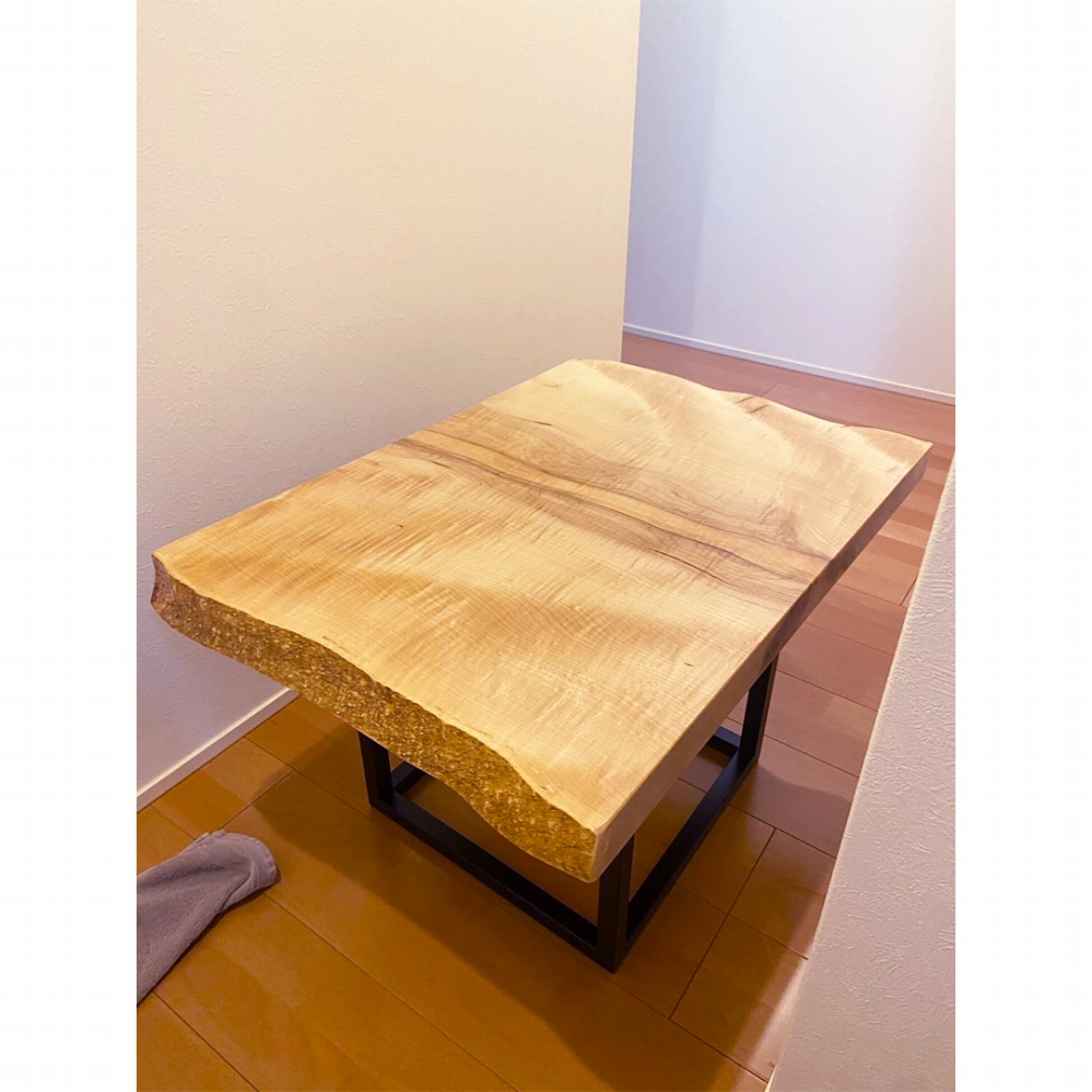 兵庫県神戸市のリピーターのお客様へ 前回は栃のダイニングテーブルでしたが 今回はメープルのセンターテーブルのお届けです😊 1600mmの長さの一枚板でしたが お部屋のバランスやカットした残りの活用などを 検討し、1050mmのサイズにカットしました 残った方にも脚をつけて 小さなサイドテーブルをお作りさせて頂きました🙌 栃の綺麗さとはまた違った綺麗さで 上品な印象ですね この度もありがとうございました🤗🌿
