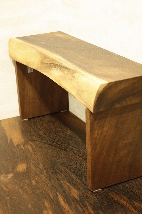 モンキーポッドの一枚板で作った書斎用デスクです。 書斎用という事で少し小ぶりなのですが、一枚板なので存在感がありますね! 奥行が55cmとスッキリ見えて使い勝手の良いサイズです。 脚はウォールナットです。 先細りになっているのでスレンダーな印象で天板を更に引き立ててくれています。 ラックは天板をカットした際の残り板で作成しました。 同じ板から作っているので親子みたいで可愛らしいですよ♪