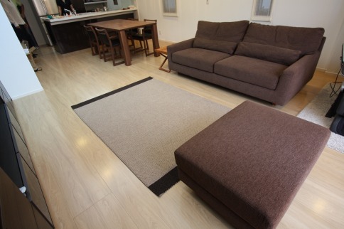 行きの深いソファは男性でもゆったり座れるサイズ。