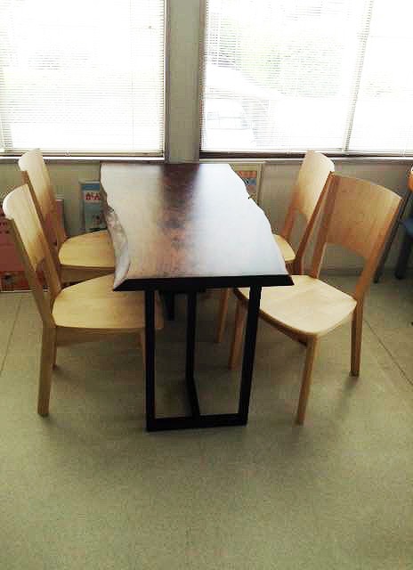 一枚板のベンチは、テーブルをよりひきたてます。 |