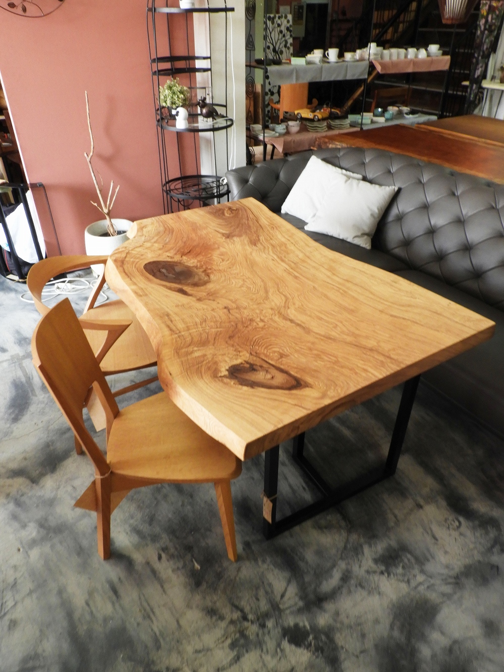 ナチュラルですが、同じタモでも色んな自然の杢や色目がが楽しめるのが面白い一枚板です。耳の風合いに皮があるとより素敵になる一枚板です。使い勝手は申し分ないのでお勧めです。