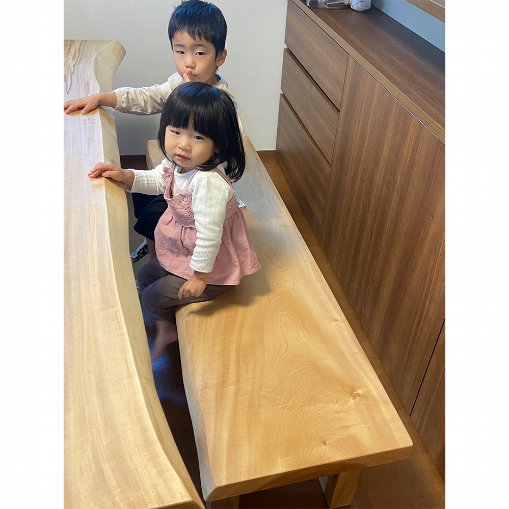ベンチにされた栃の一枚板もとても綺麗な表情です。